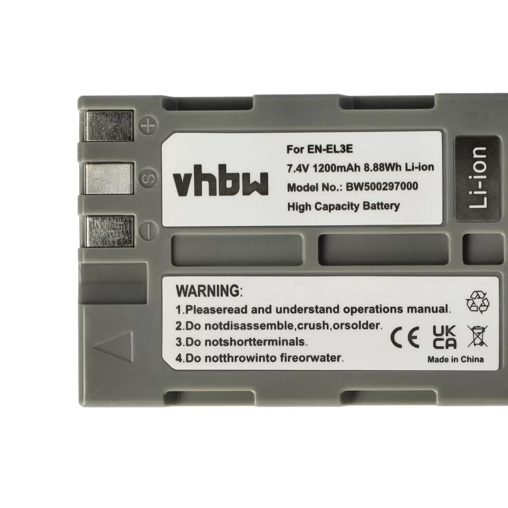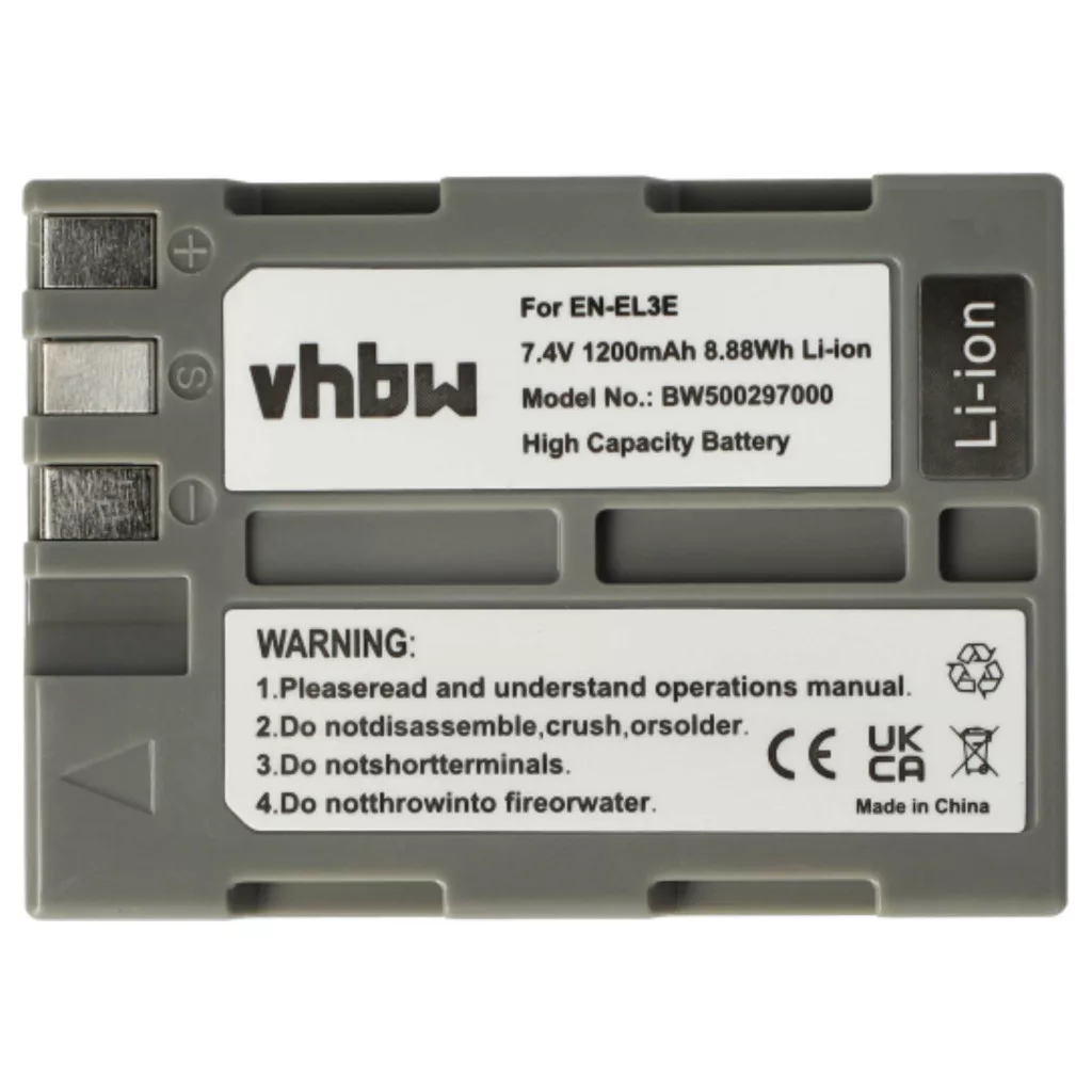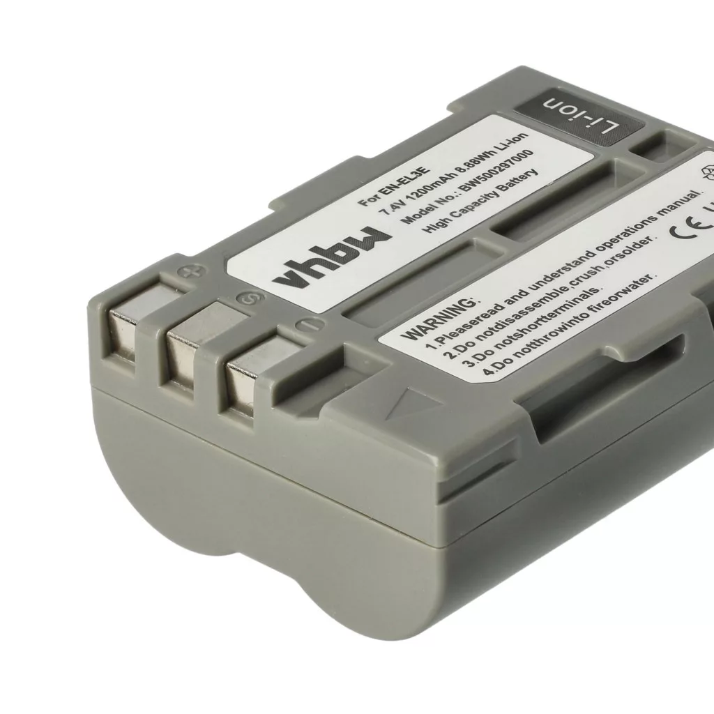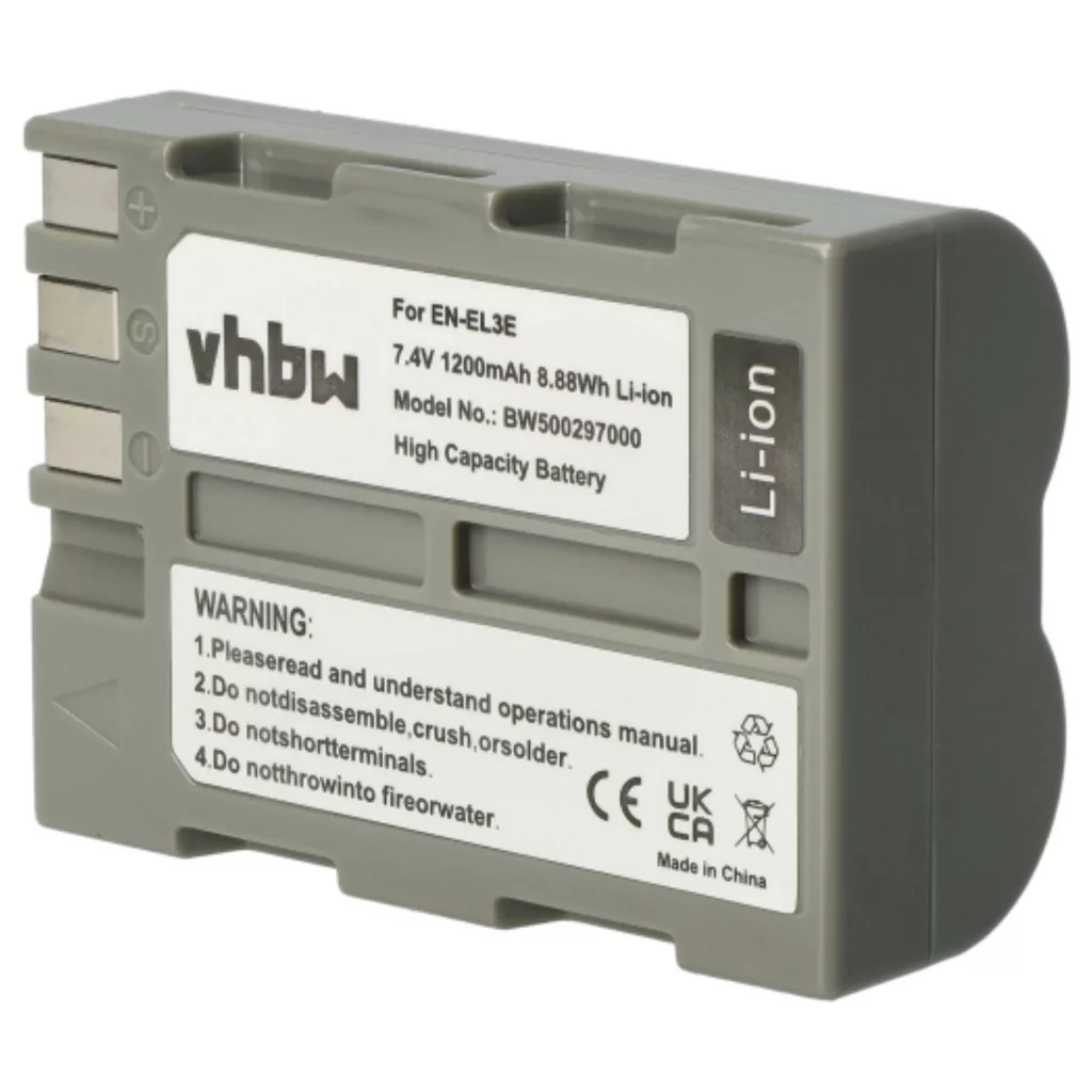 Compatible batteries that breathe new life into your Nikon camera, DSLR camera. High-quality spare parts with optimal price-performance ratio. Reliable operation and full compatibility with your digital camera. Precise manufacturing for perfect fit in your device. CE and RoHS certification - meets all operational safety guidelines. No memory effect. High-quality Li-Ion cells for optimal device performance. Lithium-ion batteries have high energy density and are among the strongest batteries. They have a low self-discharge rate compared to NiMH batteries and are not affected by the memory effect. They do not require regular discharging, making them low maintenance. With proper storage, these rechargeable batteries have a long lifespan, are durable, and have a high charge cycle count. Li-ion batteries are used in various portable devices with high energy demands, such as smartphones, notebook computers, cameras, and power tools. These batteries can also be used in radio-controlled models and telecommunications applications. Compatible devices: Nikon D50, Nikon D70, Nikon D70s, Nikon D80, Nikon D90, Nikon D100, Nikon D200, Nikon D300, Nikon D300s, Nikon D700