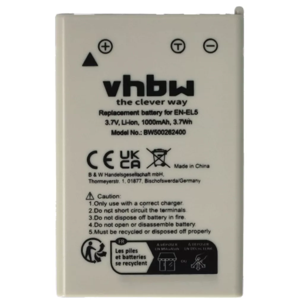 Compatible batteries that breathe new life into your Nikon / Klicktel camera, your single-lens reflex camera. High-quality components with optimal price-performance ratio. Reliable operation and full compatibility with your digital camera. Precisely manufactured to fit perfectly into your device. CE and RoHS certification - meets all operational safety guidelines. No memory effect. High-quality Li-Ion cells for optimal device performance. Lithium-ion batteries have high energy density and are among the strongest batteries. Compared to NiMH batteries, they have a low self-discharge rate and are not affected by the memory effect. They do not require regular discharging, making them low maintenance. With proper storage, these rechargeable batteries are long-lasting, durable, and have a high number of charge cycles. Li-ion batteries are used in various portable devices with high energy demands, such as smartphones, notebook computers, cameras, and power tools. These batteries can also be used in radio-controlled models and telecommunications applications. Compatible devices: Klicktel Navigator K5, Klicktel Navigator K400, Klicktel Navigator K410, Nikon Coolpix 3700, Nikon Coolpix 4200, Nikon Coolpix 5200, Nikon Coolpix 5900, Nikon Coolpix 7900, Nikon Coolpix P3, Nikon Coolpix P4, Nikon Coolpix P80, Nikon Coolpix P90, Nikon Coolpix P100, Nikon Coolpix P500, Nikon Coolpix P510, Nikon Coolpix P520, Nikon Coolpix P530, Nikon Coolpix P5000, Nikon Coolpix P5100, Nikon Coolpix P6000, Nikon Coolpix S10