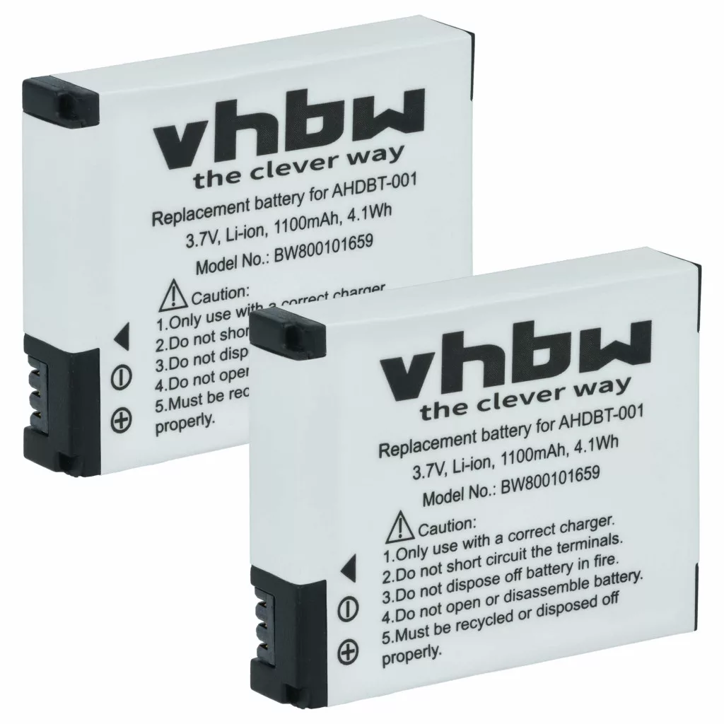Compatible batteries that breathe new life into your GoPro camcorder and action camera. High-quality spare parts with optimal price-performance ratio. Reliable operation and full compatibility with your video recording device. Precise manufacturing for perfect fit. CE and RoHS certification - meets all operational safety guidelines. No memory effect. High-quality Li-Ion cells for optimal device performance. Lithium-ion batteries have high energy density and are among the strongest batteries. Compared to NiMH batteries, they have a low self-discharge rate and are not affected by the memory effect. They do not require regular discharging, making them low maintenance. With proper storage, these rechargeable batteries are long-lasting, durable, and have a high charge cycle count. Li-ion batteries are used in various portable devices that have high energy demands, such as smartphones, notebook computers, cameras, and power tools. These batteries can also be used in radio-controlled models and telecommunications applications. Compatible devices: GoPro HD Helmet Hero, GoPro HD Hero, GoPro HD Hero 2, GoPro HD Hero 2 Outdoor Edition, GoPro HD Hero 2 Surf Edition, GoPro HD Hero 960, GoPro HD Hero Motorsports Edition, GoPro HD Motorsports Hero, GoPro HD Naked Hero, GoPro HD Surf Hero