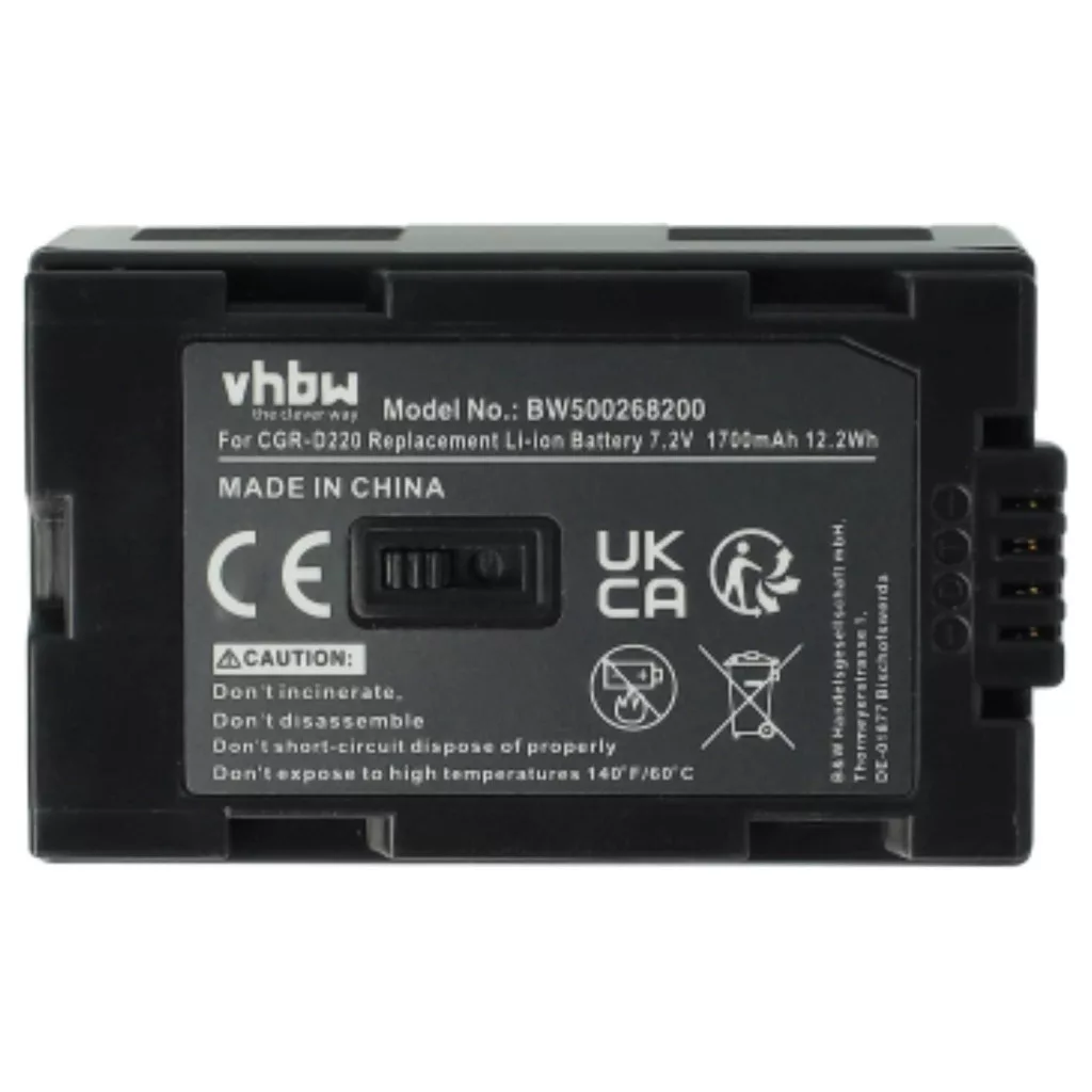 Compatible devices: Grundig DLC-1, Grundig DLC-10, Grundig DLC-20, Grundig DLC-900, Grundig DLC-1000, Grundig DLC-1500, Hitachi AG-DVC15, Hitachi DZ-MV200A, Hitachi DZ-MV200E, Hitachi DZ-MV208E, Hitachi DZ-MV230A, Hitachi DZ-MV230E, Hitachi DZ-MV250, Hitachi DZ-MV270A, Hitachi DZ-MV270E, Hitachi PV-BP8, Hitachi PV-DV100, Hitachi PV-DV100K, Hitachi PV-DV200, Hitachi PV-DV200K, Hitachi PV-DV400, Hitachi PV-DV400K, Hitachi PV-DV600, Hitachi PV-DV600K, Hitachi PV-DV700, Hitachi PV-DV710, Hitachi PV-DV800, Hitachi PV-DV800K, Hitachi PV-DVP8-A, Panasonic CGR-D16S, Panasonic NV-DA1, Panasonic NV-DA1B, Panasonic NV-DS1, Panasonic NV-DS3, Panasonic NV-DS8, Panasonic NV-DS11, Panasonic NV-DS12, Panasonic NV-DS15, Panasonic NV-DS25, Panasonic NV-DS27, Panasonic NV-DS28, Panasonic NV-DS29, Panasonic NV-DS30, Panasonic NV-DS33, Panasonic NV-DS35, Panasonic NV-DS37, Panasonic NV-DS38, Panasonic NV-DS55, Panasonic NV-DS60, Panasonic NV-DS65, Panasonic NV-DS77, Panasonic NV-DS88, Panasonic NV-DS89, Panasonic NV-DS99, Panasonic NV-DS150, Panasonic NV-DS990, Panasonic NV-EX1, Panasonic NV-EX3, Panasonic NV-EX21, Panasonic NV-GS1, Panasonic NV-GS3, Panasonic NV-GS5, Panasonic NV-GS7, Panasonic NV-GS8, Panasonic NV-GS11, Panasonic NV-GS15, Panasonic NV-GX7, Panasonic NV-MX1, Panasonic NV-MX2, Panasonic NV-MX5, Panasonic NV-MX7, Panasonic NV-MX8, Panasonic NV-MX30, Panasonic NV-MX300, Panasonic NV-MX350, Panasonic NV-MX500, Grundig BP-8, Grundig BP-9, Grundig BP-10, Hitachi DZ-BP16, Hitachi DZ-BP28, Panasonic CGP-D110, Panasonic CGP-D120, Panasonic CGP-D220, Panasonic CGP-D320, Panasonic CGP-D320E/1B, Panasonic CGR-D08, Panasonic CGR-D08A, Panasonic CGR-D14, Panasonic CGR-D16, Panasonic CGR-D16A, Panasonic CGR-D16SE/1B, Panasonic CGR-D28, Panasonic CGR-D28A/1B, Panasonic CGR-D53, Panasonic CGR-D53A, Panasonic CGR-D110, Panasonic CGR-D120, Panasonic CGR-D220, Panasonic CGR-D220E/1B, Panasonic CGR-D320, Panasonic CGR-D815, Panasonic VSB0418, Panasonic VW-VBD20, Panasonic VW-VBD25