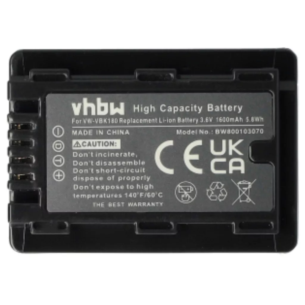 Compatible batteries that breathe new life into your Panasonic camcorder and camcorder. High-quality spare parts with optimal price-performance ratio. Reliable operation and full compatibility with your video recording device. Built-in chip that displays the remaining battery life. Precise manufacturing for a perfect fit in your device. CE and RoHS certification - meets all operational safety guidelines. No memory effect. High-quality Li-Ion cells for optimal device performance. Lithium-ion batteries have high energy density and are among the strongest batteries. Compared to NiMH batteries, they have a low self-discharge rate and are not affected by the memory effect. They do not require regular discharging, making them maintenance-free. With proper storage, these rechargeable batteries are long-lasting, durable, and have a high charge cycle count. Li-ion batteries are used in various portable devices that have high energy demands, such as smartphones, notebook computers, cameras, and power tools. These batteries can also be used in radio-controlled models and telecommunications applications. Compatible devices: Panasonic HC-V10, Panasonic HC-V100, Panasonic HC-V100EG-K, Panasonic HC-V100M, Panasonic HC-V500, Panasonic HC-V500EG-K, Panasonic HC-V500EG-S, Panasonic HC-V500M, Panasonic HC-V700, Panasonic HC-V700M, Panasonic HC-V707, Panasonic HC-V707EG-K, Panasonic HC-V707EG-S, Panasonic HC-W858, Panasonic HC-W878, Panasonic HDC-HS60, Panasonic HDC-HS80, Panasonic HDC-SD40, Panasonic HDC-SD40EG-K, Panasonic HDC-SD66, Panasonic HDC-SD66EG-K, Panasonic HDC-SD80, Panasonic HDC-SD80EG-K, Panasonic HDC-SD90, Panasonic HDC-SD90EG-K, Panasonic HDC-SD99, Panasonic HDC-SD99EG-K, Panasonic HDC-SDX1, Panasonic HDC-SDX1EG-H, Panasonic HDC-TM60, Panasonic HDC-TM80, Panasonic HDC-TM99, Panasonic SDR-H85, Panasonic SDR-H100, Panasonic SDR-S45, Panasonic SDR-S50, Panasonic SDR-S70, Panasonic SDR-T50, Panasonic SDR-T70