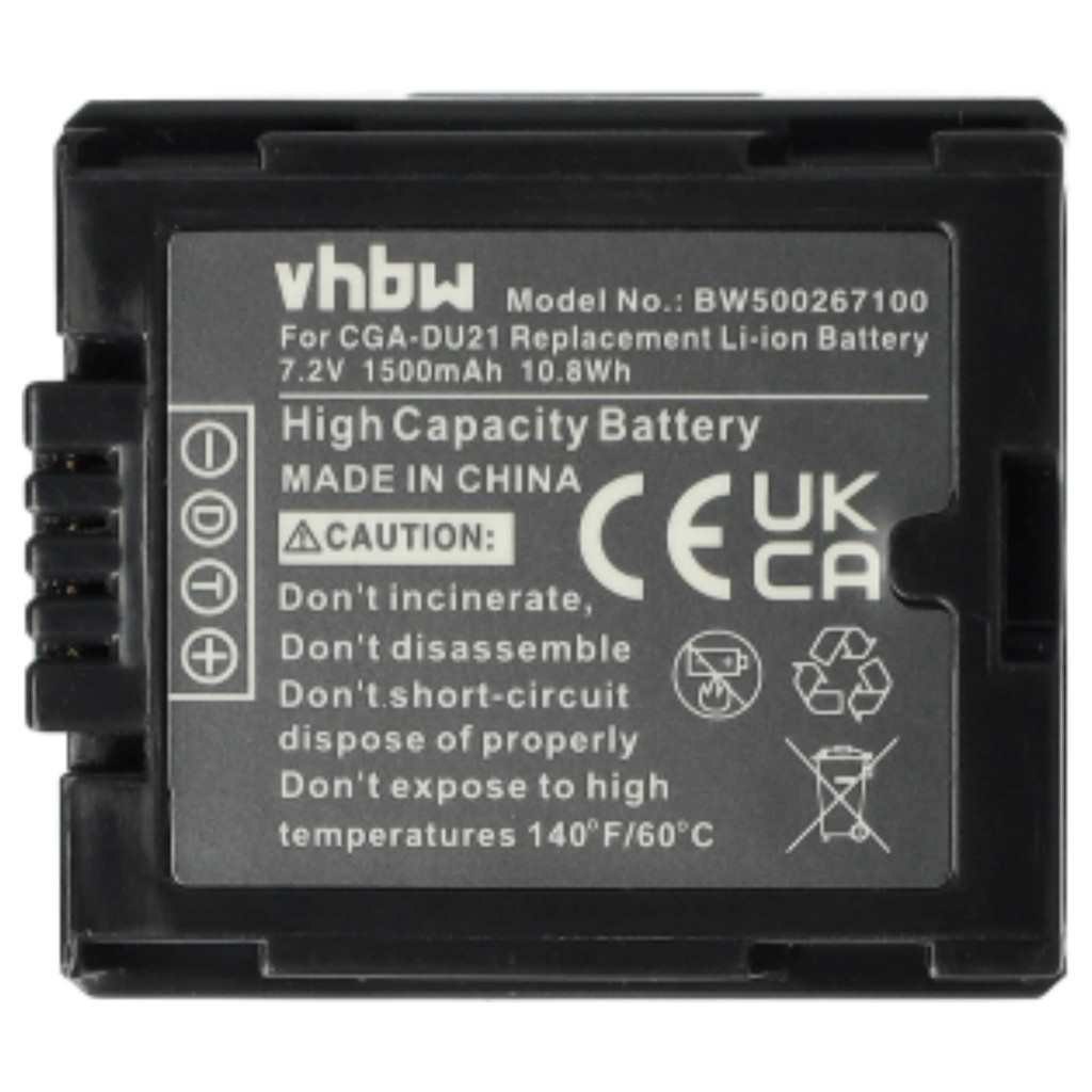 Compatible devices: Hitachi DZ-MV350A, Hitachi DZ-MV350E, Hitachi DZ-MV380A, Hitachi DZ-MV380E, Hitachi DZ-MV550A, Hitachi DZ-MV580A, Panasonic NV-GS10, Panasonic NV-GS17, Panasonic NV-GS17EG, Panasonic NV-GS21, Panasonic NV-GS22, Panasonic NV-GS27, Panasonic NV-GS30, Panasonic NV-GS33, Panasonic NV-GS35, Panasonic NV-GS50, Panasonic NV-GS55K, Panasonic NV-GS60, Panasonic NV-GS70, Panasonic NV-GS75EG, Panasonic NV-GS80, Panasonic NV-GS90, Panasonic NV-GS120, Panasonic NV-GS140, Panasonic NV-GS150, Panasonic NV-GS180, Panasonic NV-GS200, Panasonic NV-GS230, Panasonic NV-GS250, Panasonic NV-GS280, Panasonic NV-GS300, Panasonic NV-GS330, Panasonic NV-GS400, Panasonic NV-GS500, Panasonic PV-GS50, Panasonic PV-GS50S, Panasonic PV-GS55, Panasonic PV-GS70, Panasonic PV-GS120, Panasonic PV-GS200, Panasonic VDR-D100, Panasonic VDR-D150, Panasonic VDR-D160, Panasonic VDR-D220, Panasonic VDR-D250, Panasonic VDR-D300, Panasonic VDR-D310, Panasonic VDR-M30, Panasonic VDR-M50, Panasonic VDR-M53, Panasonic VDR-M55, Panasonic VDR-M70, Panasonic VDR-M75, Panasonic VDR-M95, Hitachi DZ-BP07s, Hitachi DZ-BP14s, Hitachi DZ-BP21, Panasonic CGA-DU07, Panasonic CGA-DU12, Panasonic CGA-DU14, Panasonic CGA-DU21, Panasonic CGR-DU06, Panasonic VW-VBD070, Panasonic VW-VBD140, Panasonic VW-VBD210