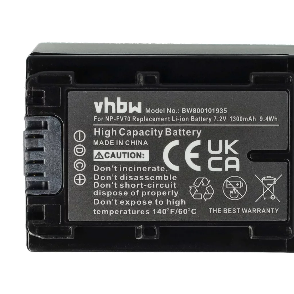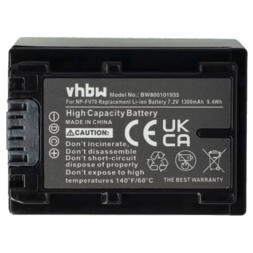 Compatible batteries that breathe new life into your Sony camcorder and camera. High-quality spare parts with optimal price-performance ratio. Reliable operation and full compatibility with your video recording device. Integrated chip that displays the remaining battery life. Precisely manufactured to fit perfectly into your device. CE and RoHS certification - meets all operational safety guidelines. No memory effect. High-quality Li-Ion cells for optimal device performance. Lithium-ion batteries have high energy density and are among the strongest batteries. Compared to NiMH batteries, they have a low self-discharge rate and are not affected by the memory effect. They do not require regular discharging, making them low maintenance. With proper storage, these rechargeable batteries have a long lifespan, are durable, and have a high charge cycle count. Li-ion batteries are used in various portable devices with high energy demands, such as smartphones, notebook computers, cameras, and power tools. These batteries can also be used in radio-controlled models and telecommunications applications. Compatible devices: Sony DCR-DVD110E, Sony DCR-DVD115E, Sony DCR-DVD150E, Sony DCR-DVD308E, Sony DCR-DVD310E, Sony DCR-DVD410E, Sony DCR-DVD450E, Sony DCR-DVD510E, Sony DCR-DVD610E, Sony DCR-DVD650E, Sony DCR-DVD710E, Sony DCR-DVD810E, Sony DCR-DVD850E, Sony DCR-DVD910E, Sony DCR-HC48E, Sony DCR-SR37E, Sony DCR-SR38E, Sony DCR-SR47E, Sony DCR-SR48E, Sony DCR-SR55E, Sony DCR-SR57E, Sony DCR-SR58E, Sony DCR-SR67E, Sony DCR-SR68E, Sony DCR-SR77E, Sony DCR-SR78E, Sony DCR-SR87E, Sony DCR-SR88E, Sony DCR-SR200E, Sony DCR-SX15, Sony DCR-SX15E, Sony DCR-SX21, Sony DCR-SX21E, Sony DCR-SX22E, Sony DCR-SX30E, Sony DCR-SX31E, Sony DCR-SX33E, Sony DCR-SX34E, Sony DCR-SX40E, Sony DCR-SX41E, Sony DCR-SX43E, Sony DCR-SX44E, Sony DCR-SX45, Sony DCR-SX45E, Sony DCR-SX45ER, Sony DCR-SX50E, Sony DCR-SX53E, Sony DCR-SX60E, Sony DCR-SX63E, Sony DCR-SX65, Sony DCR-SX65E, Sony DCR-SX73E, Sony DCR-SX83E, Sony DCR-SX85, Sony DCR-SX85E, Sony DCR-SX85ES, Sony DEV-50V, Sony FDR-AX33, Sony FDR-AX43, Sony FDR-AX53, Sony FDR-AX60, Sony FDR-AX100E, Sony FDR-AXP33, Sony HDR-CX100E, Sony HDR-CX105E, Sony HDR-CX106E, Sony HDR-CX110E, Sony HDR-CX115E, Sony HDR-CX116E, Sony HDR-CX130, Sony HDR-CX130B, Sony HDR-CX130E, Sony HDR-CX130EB, Sony HDR-CX130EL, Sony HDR-CX130ER, Sony HDR-CX130ES, Sony HDR-CX150E, Sony HDR-CX155E, Sony HDR-CX160, Sony HDR-CX160E, Sony HDR-CX180, Sony HDR-CX180ER, Sony HDR-CX220E, Sony HDR-CX220EB, Sony HDR-CX220EL, Sony HDR-CX220ER, Sony HDR-CX220ES, Sony HDR-CX280E, Sony HDR-CX280EB, Sony HDR-CX305E, Sony HDR-CX305VE, Sony HDR-CX320E, Sony HDR-CX320EB, Sony HDR-CX350E, Sony HDR-CX350VE, Sony HDR-CX360, Sony HDR-CX360E, Sony HDR-CX360VE, Sony HDR-CX410VE, Sony HDR-CX450, Sony HDR-CX500E, Sony HDR-CX505VE, Sony HDR-CX520E, Sony HDR-CX520VE, Sony HDR-CX550E, Sony HDR-CX550VE, Sony HDR-CX560, Sony HDR-CX560V, Sony HDR-CX560VE, Sony HDR-CX625, Sony HDR-CX690, Sony HDR-CX690EB, Sony HDR-CX690VE, Sony HDR-CX700, Sony HDR-CX700VE, Sony HDR-CX730E, Sony HDR-CX740E, Sony HDR-CX740VE, Sony HDR-CX900E, Sony HDR-HC9E, Sony HDR-PJ10, Sony HDR-PJ10E, Sony HDR-PJ30, Sony HDR-PJ30V, Sony HDR-PJ30VE, Sony HDR-PJ50, Sony HDR-PJ50E, Sony HDR-PJ50VE, Sony HDR-PJ200, Sony HDR-PJ200E, Sony HDR-PJ220E, Sony HDR-PJ220EB, Sony HDR-PJ260, Sony HDR-PJ260E, Sony HDR-PJ260VE, Sony HDR-PJ320E, Sony HDR-PJ320EB, Sony HDR-PJ320VE, Sony HDR-PJ330E, Sony HDR-PJ410E, Sony HDR-PJ420VE, Sony HDR-PJ530E, Sony HDR-PJ580, Sony HDR-PJ580VE, Sony HDR-PJ620, Sony HDR-PJ650E, Sony HDR-PJ650V, Sony HDR-PJ650VE, Sony HDR-PJ740, Sony HDR-PJ740VE, Sony HDR-PJ780VE, Sony HDR-PJ810E, Sony HDR-TD3VE, Sony HDR-TD10, Sony HDR-TD10E, Sony HDR-TD20VE, Sony HDR-TD30, Sony HDR-TG1, Sony HDR-TG1E, Sony HDR-TG5, Sony HDR-TG5E, Sony HDR-UX3E, Sony HDR-UX7E, Sony HDR-UX9E, Sony HDR-UX19E, Sony HDR-XR100E, Sony HDR-XR105E, Sony HDR-XR106E, Sony HDR-XR150, Sony HDR-XR150E, Sony HDR-XR155E, Sony HDR-XR160, Sony HDR-XR160E, Sony HDR-XR200E, Sony HDR-XR200VE, Sony HDR-XR350E, Sony HDR-XR350VE, Sony HDR-XR500E, Sony HDR-XR500VE, Sony HDR-XR520E, Sony HDR-XR520VE, Sony HDR-XR550E, Sony HDR-XR550VE, Sony HXR-NX3, Sony HXR-NX5R, Sony HXR-NX30, Sony HXR-NX30E, Sony HXR-NX70, Sony HXR-NX70E, Sony HXR-NX100, Sony Handycam FDR-AX53, Sony Handycam FDR-AX53E, Sony Handycam FDR-AX700, Sony Handycam FDR-AX700E, Sony ILME-FX3, Sony ILME-FX6V, Sony NEX-FS100U, Sony NEX-VG10, Sony NEX-VG10E, Sony NEX-VG20, Sony NEX-VG20E, Sony NEX-VG20EH, Sony NEX-VG30, Sony NEX-VG30E, Sony NEX-VG30EB, Sony NEX-VG30EH, Sony NEX-VG30H, Sony NEX-VG900, Sony NEX-VG900E, Sony PXW-X70, Sony PXW-Z90V