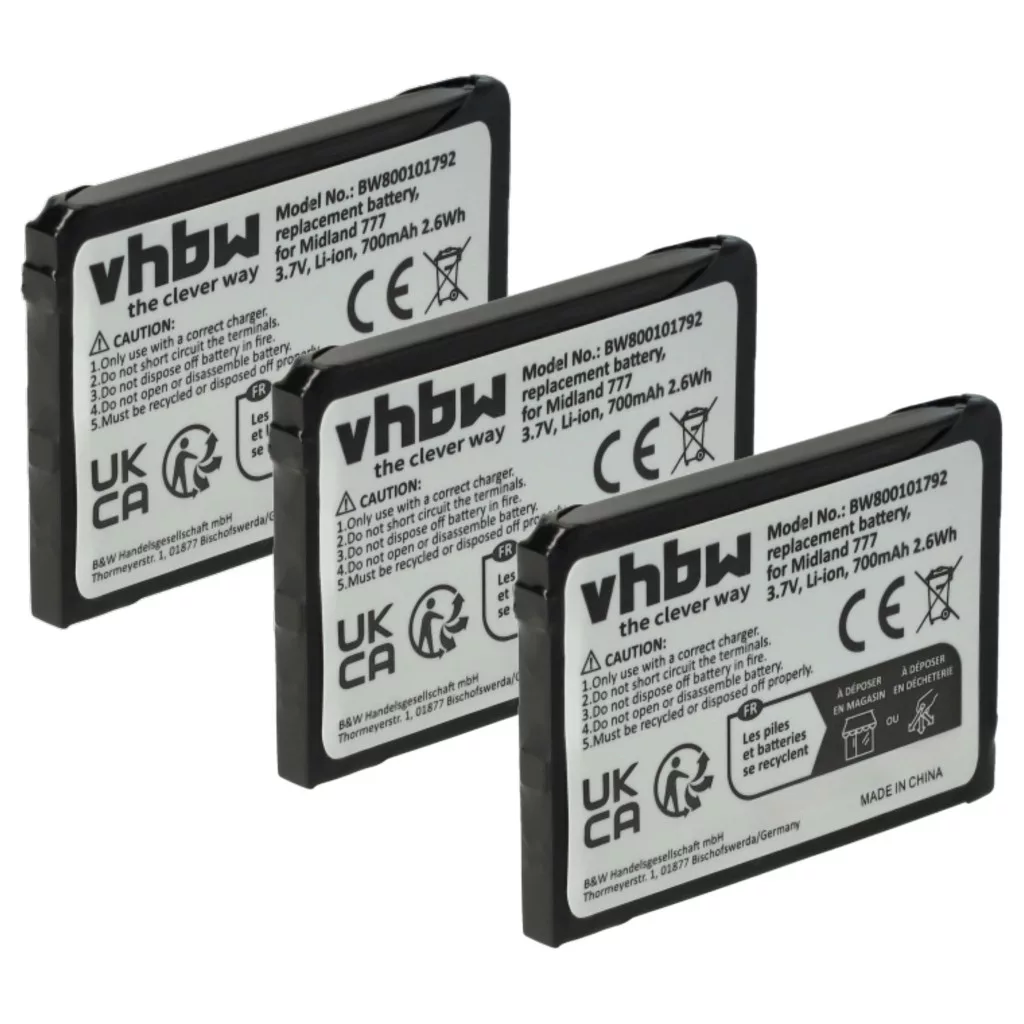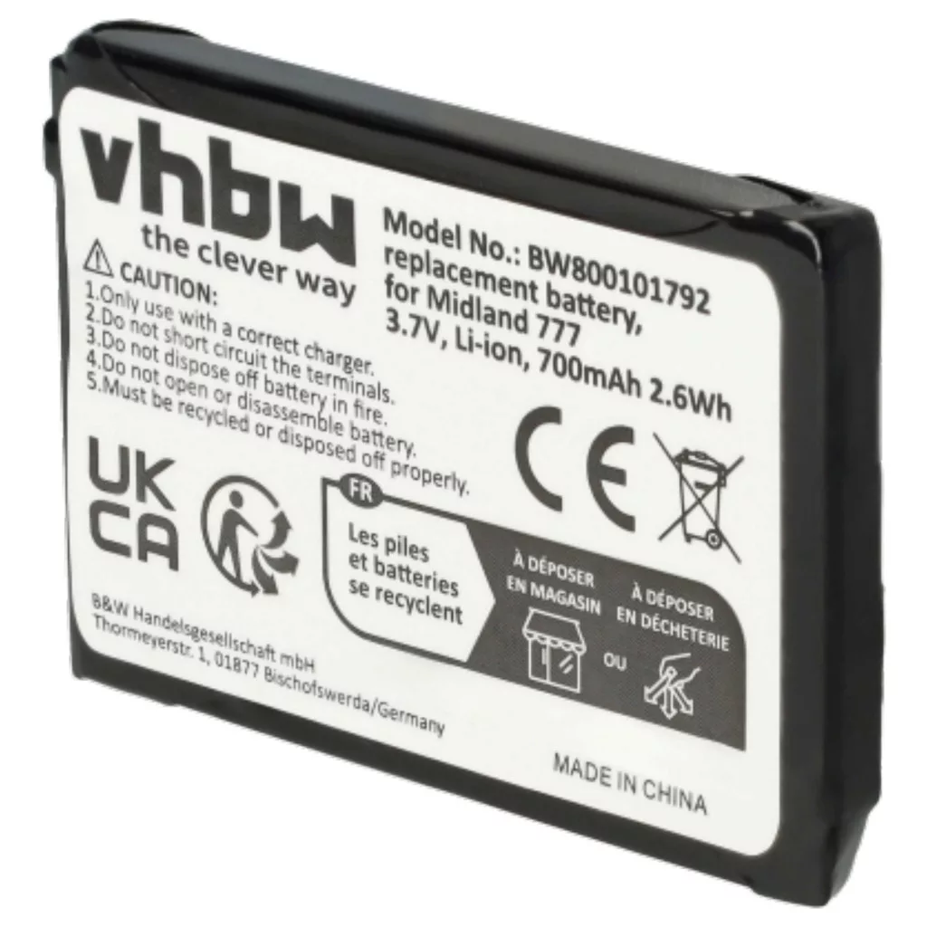Compatible batteries that breathe new life into your Midland / M-E / Alan CB radio. High-quality spare parts with optimal price-performance ratio. Reliable operation and full compatibility with your radio device. Precisely manufactured for a perfect fit. CE and RoHs certification - meets all operational safety directives. No memory effect. High-quality Li-Ion cells for optimal device performance. Lithium-ion batteries have high energy density and are among the strongest batteries. Compared to NiMH batteries, they have a low self-discharge rate and are not affected by the memory effect. They do not require regular discharging, thus requiring little maintenance. With proper storage, these rechargeable batteries are long-lasting, durable, and have a high charge cycle count. Li-ion batteries are used in various portable devices that have high energy demands, such as smartphones, notebook computers, cameras, and power tools. These batteries can also be used in radio-controlled models and telecommunications applications. Compatible devices: Alan 777, M-E FS-2, M-E FS-2.1, Midland 777, Midland PMR446, Midland PMR446+