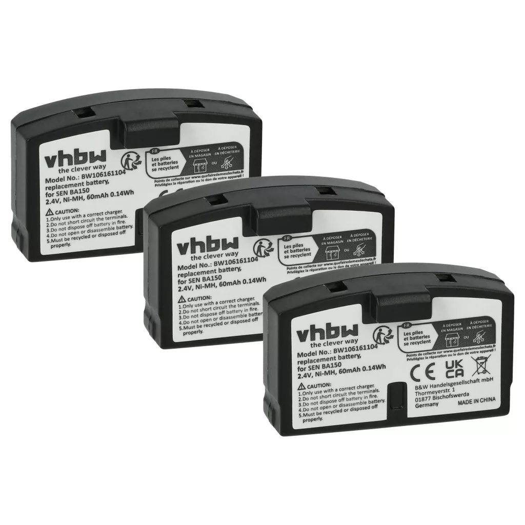 Compatible batteries breathe new life into AKG / Sennheiser / Williams Sound headphones. High-quality spare parts with optimal price-performance ratio. Reliable operation and full compatibility with the wireless headphones. Precise manufacturing for perfect fit in your device. CE and RoHS certification - meets all operational safety directives. High-quality NiMH cells for optimal device performance. Nickel-metal hydride batteries are similar to nickel-cadmium cells but have a higher energy density at the same voltage (approximately double). Due to their low internal resistance, NiMH batteries can be used in high energy-consuming devices at low cost, such as small LED lamps, toys, audio and photo equipment, phones, electric toothbrushes, shavers, power tools, and remote-controlled electric models. Compatible devices: AKG Headphones AP97 A, AKG Headphones AP 97 A, AKG Headphones AP97A, AKG Headphones Balance K 122 IR, AKG Headphones Balance K 215 AFC, AKG Headphones Balance K 216 AFC, Sennheiser A200, Sennheiser Audioport A200, Sennheiser HDI 302, Sennheiser HDI 380, Sennheiser HDR4, Sennheiser HDR6, Sennheiser HDR 6-9, Sennheiser HDR 8, Sennheiser HDR 8-9, Sennheiser HDR30, Sennheiser HDR40, Sennheiser HDR 45, Sennheiser HDR54, Sennheiser HDR 60, Sennheiser HDR 65, Sennheiser HDR 65 TV, Sennheiser HDR 80, Sennheiser HDR 85, Sennheiser IS150, Sennheiser IS300, Sennheiser IS380, Sennheiser RI 50, Sennheiser RI 55, Sennheiser RI 150, Sennheiser RI 250, Sennheiser RI 250 J, Sennheiser RI 250 S, Sennheiser RI 300, Sennheiser RI 500, Sennheiser RI 810, Sennheiser RI 810 S, Sennheiser RR 820, Sennheiser RR 820 S, Sennheiser RR 2400, Sennheiser RR 2500, Sennheiser RS4, Sennheiser RS5, Sennheiser RS6, Sennheiser RS8, Sennheiser RS 8, Sennheiser RS 8-9, Sennheiser RS30, Sennheiser RS40, Sennheiser RS45, Sennheiser RS60, Sennheiser RS 65, Sennheiser RS80, Sennheiser RS 85, Sennheiser RS400, Sennheiser RS2400, Sennheiser SET 55 TV, Sennheiser Set 50 TV, Sennheiser Set 250, Sennheiser Set 500, Sennheiser Set 820, Sennheiser Set 820 S, Sennheiser Set 2500, Williams Sound RX237, Williams Sound RX238, Williams Sound RX239, Williams Sound WIR 237, Williams Sound WIR 238, Williams Sound WIR 239