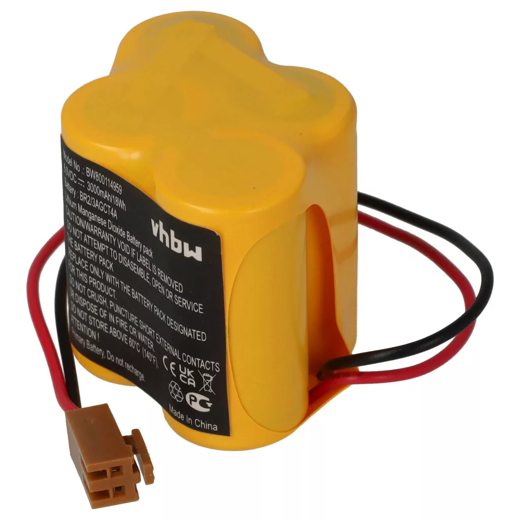 Compatible battery (non-rechargeable) for GE / Fanuc / Allen Bradley industrial control devices, breathing new life into them. High-quality component with optimal price-performance ratio. Reliable operation and full compatibility with industrial communication networks. Precise manufacturing for perfect fit. CE and RoHS certification - meets all operational safety directives. No memory effect. Replaces GE Fanuc A06B-6114-K504, A98L-0031-0025, A98L00310025, BR-2/3A4F, BR-2/3AGCT4A, BR2/3AGCT4A, CL 25A, PLC 18-T, Robotics 18-T / Dantona Matt Pack (with brown connector) batteries. Replace the controller unit battery after a power outage. The charged battery is necessary to keep the controller's internal RAM memory buffered and to securely retain data in case of power or voltage failure. High-quality Li-Ion cells for optimal device performance. Lithium-ion batteries have high energy density and are among the strongest batteries. They have a low self-discharge rate compared to NiMH batteries and do not suffer from memory effect. They do not require regular discharging, making them low maintenance. With proper storage, these rechargeable batteries are long-lasting, durable, and have a high charge cycle count. Li-ion batteries are used in various portable devices that have high energy demands, such as smartphones, notebook computers, cameras, and power tools. These batteries can also be used in radio-controlled models and telecommunications applications. Compatible devices: Allen Bradley 1747-L511 SLC 5/01, Allen Bradley 1747-L514 SLC 5/01, Allen Bradley 1747-L524 SLC 5/02, Allen Bradley 1747-L531 SLC 5/03, Allen Bradley 1747-L532 SLC 5/03, Allen Bradley 1747-L541 SLC 5/04, Allen Bradley 1747-L542 SLC 5/04, Allen Bradley 1747-L542P SLC 5/04, Allen Bradley 1747-L543 SLC 5/04, Allen Bradley 1747-L551 SLC 5/05, Allen Bradley 1747-L552 SLC 5/05, Allen Bradley 1747-L553 SLC 5/05, Allen Bradley 1766-L32xxx, Allen Bradley BA 1764-LxP, Allen Bradley MicroLogix 1400, Allen Bradley MicroLogix 1500, Allen Bradley SLC-500, GE / Fanuc 18-T SPS, GE / Fanuc Alpha iSV, GE / Fanuc Alpha iSV CNC, GE / Fanuc Beta iSV, GE / Fanuc Beta iSVSP, GE / Fanuc Beta iSVSPc