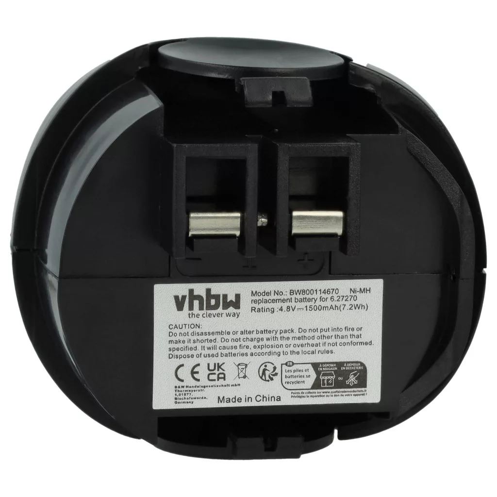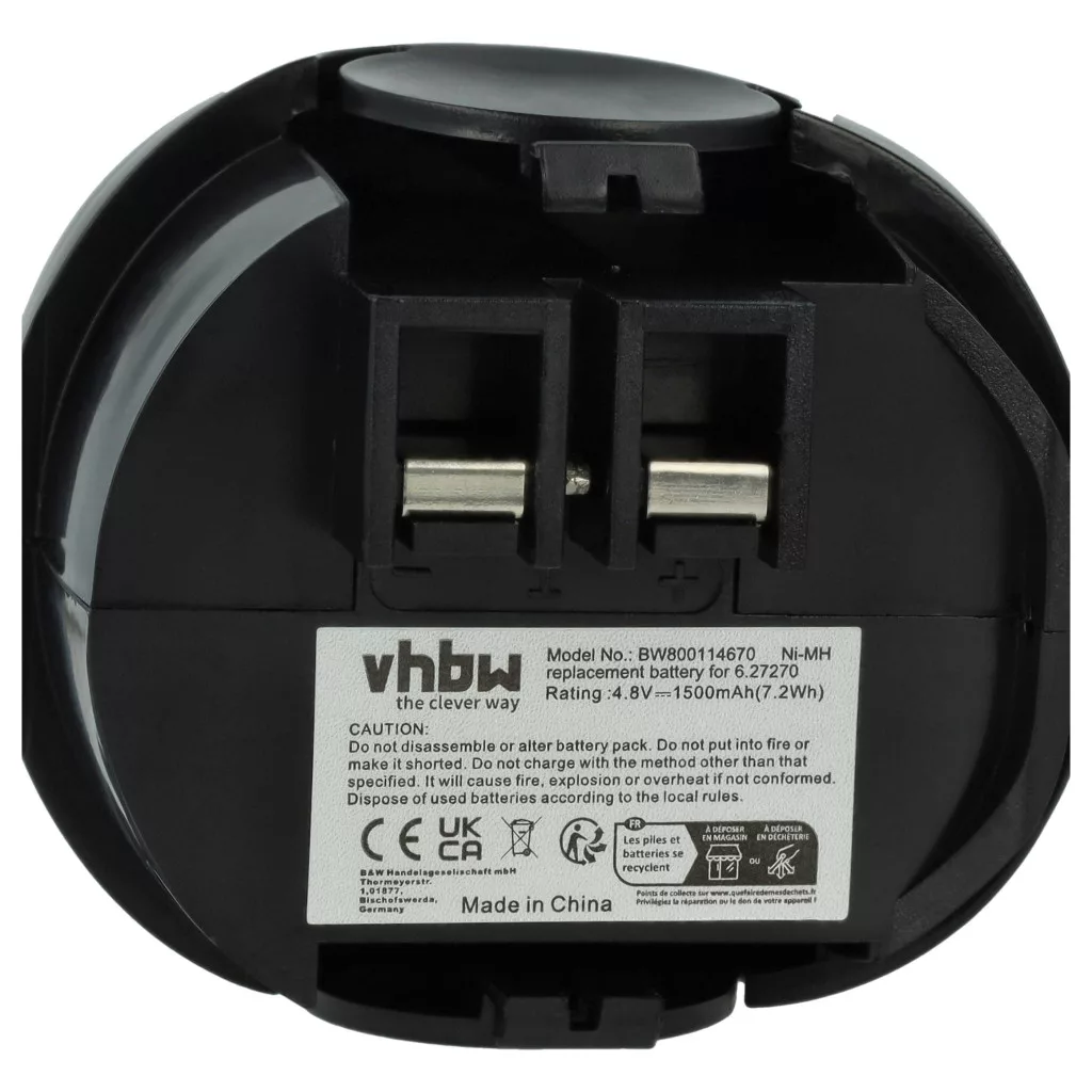 Compatible batteries that breathe new life into your Würth / Metabo screwdriver and drill. High-quality component with optimal price-performance ratio. Reliable operation and full compatibility with your power tool. Precise manufacturing for perfect fit. CE and RoHS certification - meets all operational safety directives. High-quality NiMH cells for optimal device performance. Nickel-metal hydride batteries are similar to nickel-cadmium cells but have a higher energy density (about twice) at the same voltage. Thanks to their low internal resistance, NiMH batteries can be used in high energy-consuming devices, but at a low cost, such as small LED lamps, toys, audio and photo devices, phones, electric toothbrushes, shavers, tools, and remote-controlled electric models. Compatible devices: Metabo 00064000, Metabo 6.00059.50, Metabo 6.00059.51, Metabo 6.00063.50, Metabo 6.00064.50, Metabo 6.02410.50, Metabo 6.27000.00, Metabo 600059510, Metabo Powergrip 2, Metabo Powergripp Flashlight, Metabo Powermaxx, Metabo Powermaxx 4.8, Metabo Powermaxx Basic, Würth Master 0700851