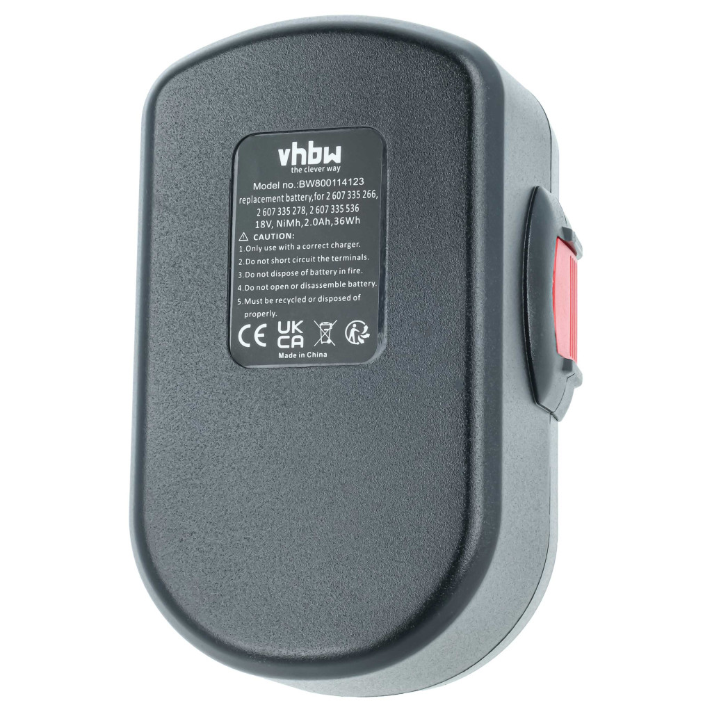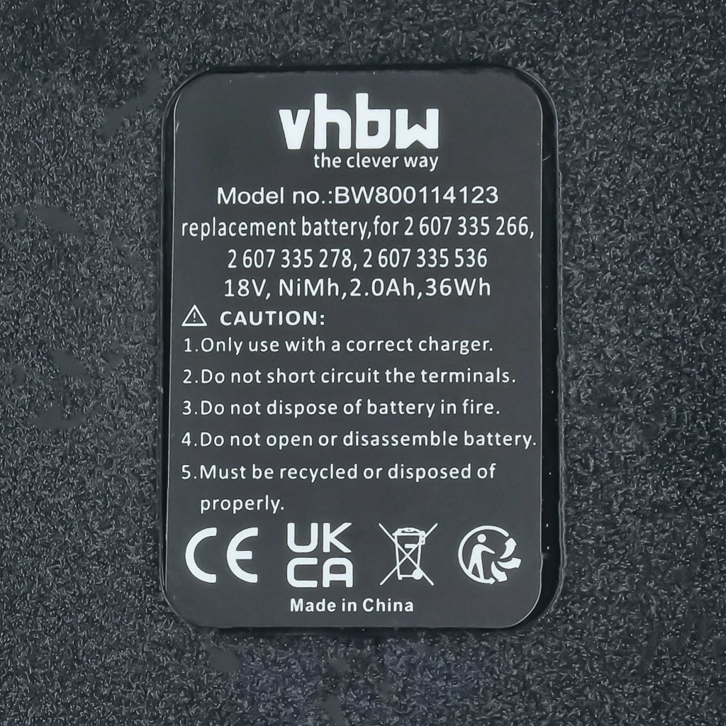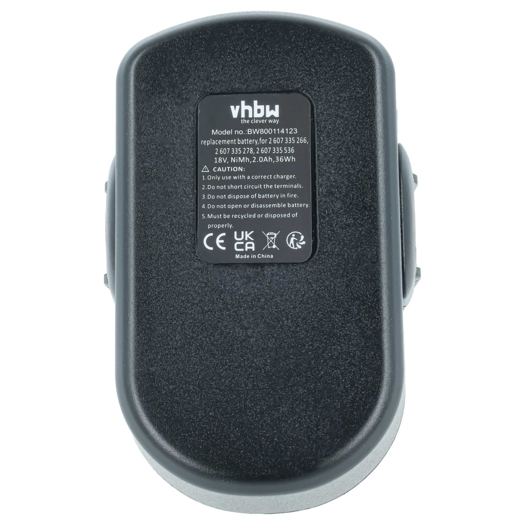 Compatible batteries that breathe new life into your Bosch screwdriver, drill. High-quality spare part with optimal price-performance ratio. Reliable operation and full compatibility with your power tool. Precise manufacturing for perfect fit. CE and RoHs certification - meets all operational safety directives. High-quality NiMH cells for optimal device performance. Nickel-metal hydride batteries are similar to nickel-cadmium cells but have a higher energy density (about twice) at the same voltage. Thanks to their low internal resistance, NiMH batteries can also be used in high energy-consuming devices, but at a low cost, such as small LED lamps, toys, audio and photo equipment, phones, electric toothbrushes, shavers, power tools, and remote-controlled electric models. Compatible devices: Bosch 1644, Bosch 1644-24, Bosch 1644B-24, Bosch 1644K, Bosch 1644K-24, Bosch 1646K, Bosch 1659K, Bosch 1659RK, Bosch 1662, Bosch 1662B, Bosch 1662K, Bosch 1662K-24, Bosch 1688K-24, Bosch 3453, Bosch 3453-01, Bosch 3454, Bosch 3454SB, Bosch 3860CK, Bosch 3860CRK, Bosch 3860K, Bosch 3860RK, Bosch 3870, Bosch 3870-04, Bosch 3918, Bosch 3918B, Bosch 13618, Bosch 13618-2G, Bosch 15618, Bosch 22618, Bosch 23618, Bosch 32618, Bosch 32618-2G, Bosch 32618-RT, Bosch 33618, Bosch 33618-2G, Bosch 35618, Bosch 52318, Bosch 52318B, Bosch 53518, Bosch 53518B, Bosch GDR 18 V, Bosch GDS 18 V, Bosch GDS 18 V-HT, Bosch GHO 18 V, Bosch GKS 18 V, Bosch GLI 18 V, Bosch GSA 18 VE, Bosch GSB 18 VE-2, Bosch GSR 18 V, Bosch GSR 18 VE-2, Bosch GST 18 V, Bosch PSB 18 VE 2, Bosch PSR 18 VE-2