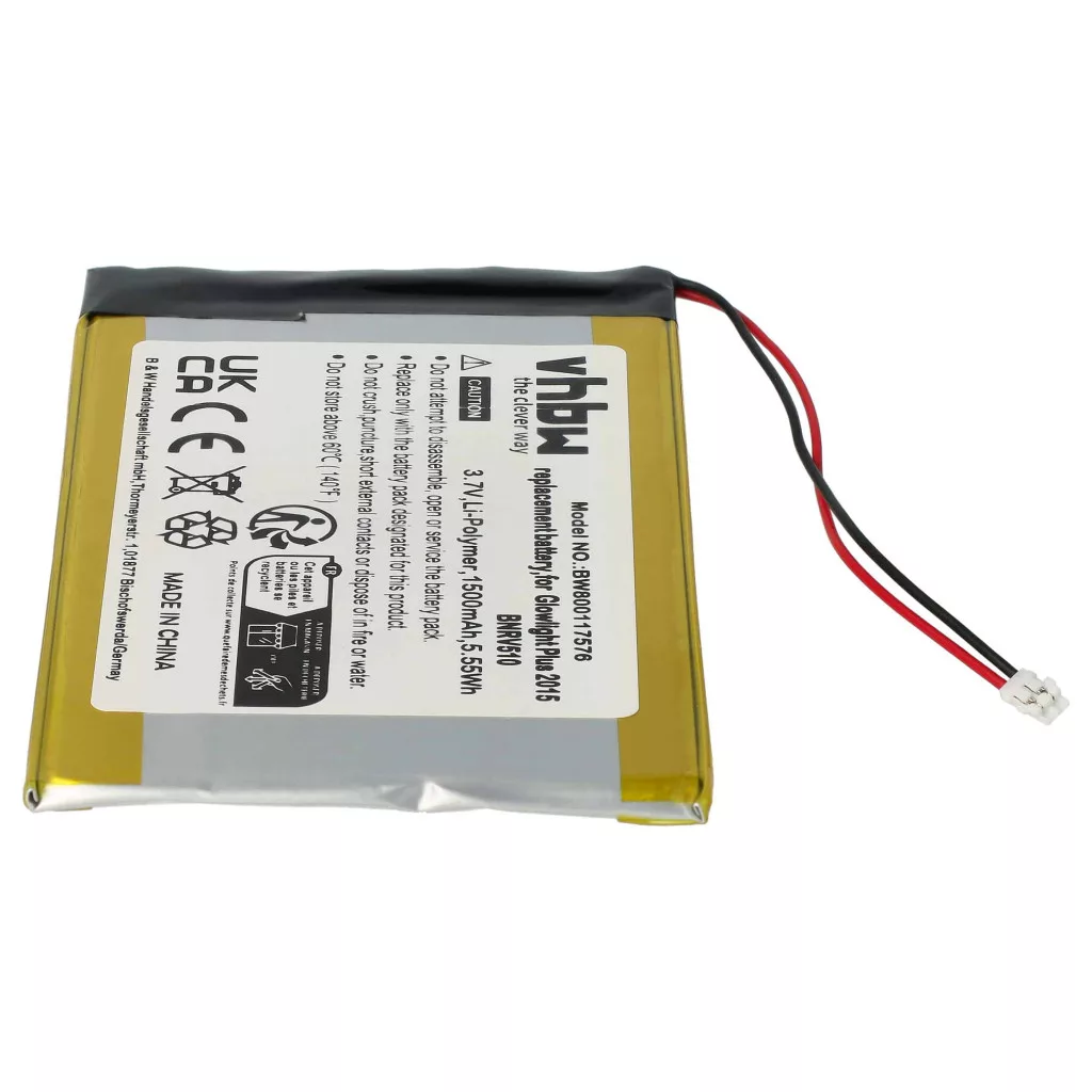 Compatible battery that breathes new life into your Barnes & Noble / Kobo / Tolino / Pocketbook e-reader. High-quality replacement part with optimal price-performance ratio. Reliable operation and full compatibility with your eReader. Precise manufacturing for perfect fit in your device. CE and RoHS certified - meets all operational safety guidelines. No memory effect. High-quality Li-polymer cells for optimal device performance. Lithium-ion polymer batteries (often abbreviated as LiPo, Li-poly, lithium-poly, and LIP) belong to the Li-ion family. They have a low self-discharge rate, are long-lasting, and have high capacity. Compared to other Li-ion batteries, lithium polymer batteries have slightly lower energy storage capacity but are more resistant to overcharging. Polymer-based electrolytes allow these lightweight batteries to be made in various shapes and designs, making them very versatile. LiPo batteries are commonly used in battery-powered electric vehicles, remote-controlled electric models, smartphones, and notebook computers. Compatible devices: Barnes & Noble BNRV510, Barnes & Noble Nook Glowlight Plus 2015, Kobo Aura H20, Kobo Glo HD, Pocketbook 631 Touch HD, Pocketbook PR-28, Tolino Shine 1, Tolino Shine 2 HD, Tolino Shine 3, Tolino Vision 2, Tolino Vision 3 HD, Tolino Vision 4HD