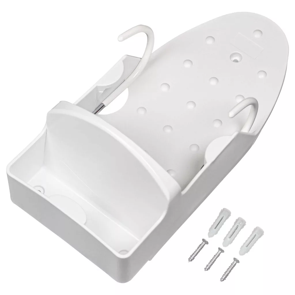 Reliable holder for the iron and ironing board. Well-designed for easy replacement, fully functional and compatible with your household ironing tools. Easily mountable on the wall and in the cabinet. Durable holder for the steam iron and ironing board. If you are looking for a compatible and cost-effective steam iron holder, you are in the right place. Our holder not only makes ironing more efficient but also saves space. The intelligently designed wall or cabinet-mounted holder provides a safe storage option for the iron and features a special holder for the ironing board, keeping your ironing tools organized and within reach. This flexible mounting option allows you to secure the holder to the wall or cabinet. The included mounting materials enable quick and easy installation of the iron and ironing board hook. This cabinet or wall holder is made of heat-resistant plastic that can withstand temperatures of up to 100 °C. This allows you to safely store your ironing tools immediately after use. Order today and install a neat and practical storage solution for your ironing accessories in no time. CE and RoHS certified - meets all operational safety guidelines.