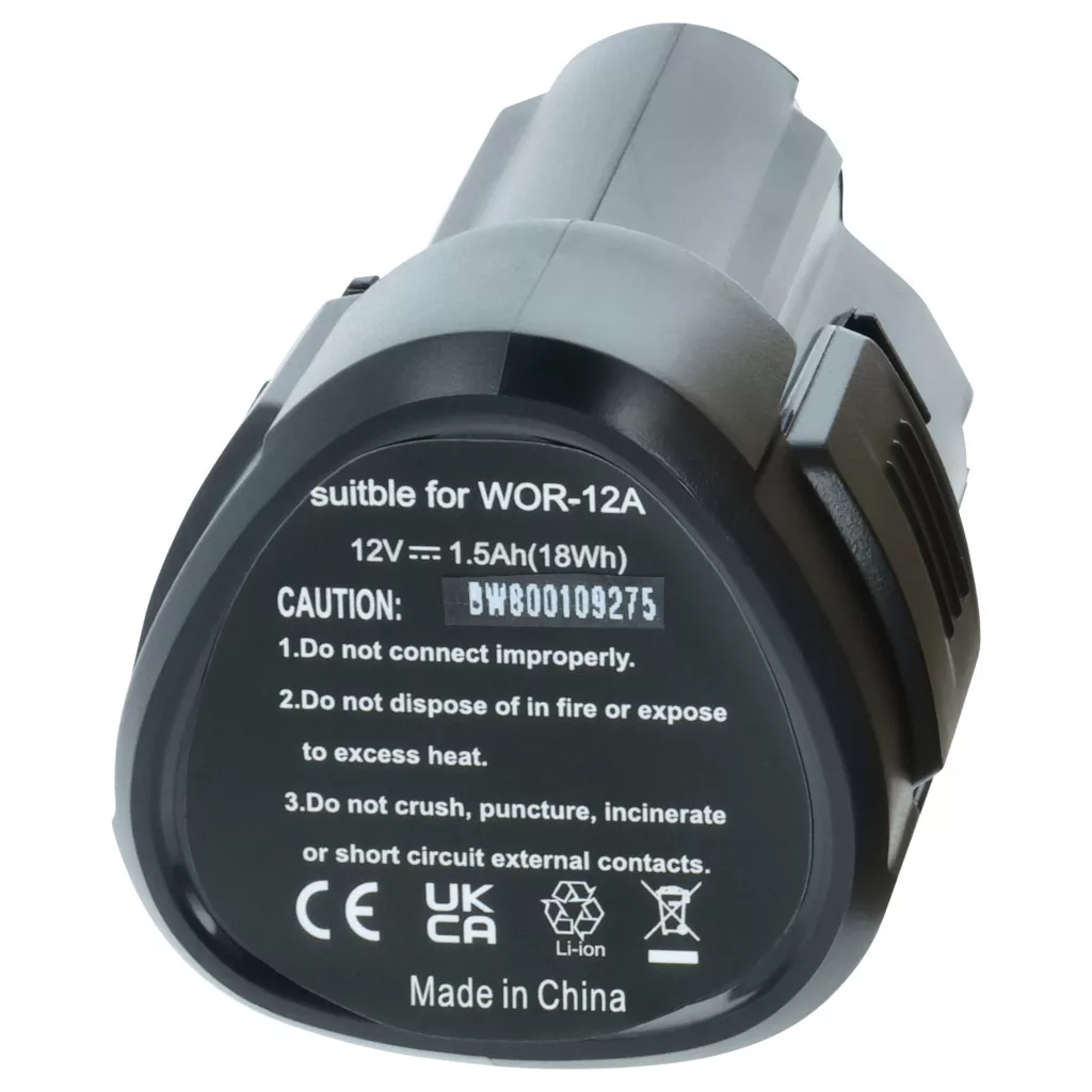 Compatible batteries that breathe new life into your Worx / Rockwell screwdriver. High-quality replacement part with optimal price-performance ratio. Reliable operation and full compatibility with your power tool. Precisely manufactured for a perfect fit. CE and RoHS certified - meets all operational safety directives. No memory effect. High-quality Li-Ion cells for optimal tool performance. Lithium-ion batteries have a high energy density and are among the strongest batteries. Compared to NiMH batteries, they have a low self-discharge rate and are not affected by the memory effect. They do not require regular discharging, making them low maintenance. With proper storage, these rechargeable batteries are long-lasting, durable, and have a high number of charge cycles. Li-ion batteries are used in various portable devices that have high energy demands, such as smartphones, notebook computers, cameras, and power tools. These batteries can also be used in radio-controlled models and telecommunications applications. Compatible devices: Rockwell RK2510K, Rockwell RK2510K2, Rockwell RK2515K2, Rockwell RK2516K, Rockwell RW9300, Worx W125.1, Worx W125.3, Worx W125.4, Worx W125.5, Worx W125.M, Worx WU025 Lampe, Worx WU127, Worx WX125, Worx WX126, Worx WX128, Worx WX128.2, Worx WX283, Worx WX382, Worx WX382.2, Worx WX382.3, Worx WX382.4, Worx WX382.7, Worx WX382.M, Worx WX382.M1, Worx WX382.M2, Worx WX521, Worx WX521.1, Worx WX540, Worx WX540.3, Worx WX673, Worx WX673.3, Worx WX673.M, Worx WX677, Worx WX677.7