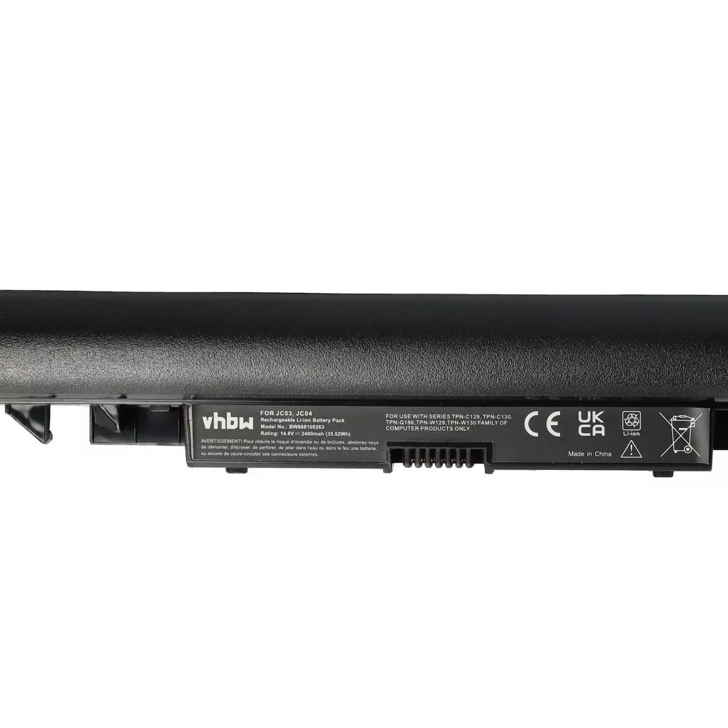 Compatible battery to extend the lifespan of your HP notebook. High-quality component with optimal price-performance ratio. Reliable functionality and full compatibility with your netbook. Precision manufacturing for a perfect fit to your device. CE and RoHS certified – complies with operational safety guidelines. No memory effect. High-quality Li-Ion cells for optimal device performance. Lithium-ion batteries have high energy density and are among the strongest batteries. They have a low self-discharge rate compared to NiMH batteries and are not subject to memory effect. They do not require regular discharging, thus requiring little maintenance. With proper storage, these rechargeable batteries are long-lasting, durable, and have many possible charge cycles. Li-ion batteries are used in various high-energy portable devices such as smartphones, notebook computers, cameras, and electric power tools. These batteries can also be used in radio-controlled models and telecommunications applications. Note: For lithium-ion replacement batteries with significantly higher capacity (1000 mAh and above) than the original battery, the replacement size may vary slightly, making it slightly heavier or thicker. As a result, the replacement battery may protrude slightly.; Compatible devices: HP 14-bs512, HP 14-bs528, HP 15-BS576tx, HP 15-bs008ng, HP 15-bs040, HP 15-bs165, HP 15-bs181, HP 15-bs197, HP 15-bw062ng, HP 17-BS, HP 17-bs045ng, HP 17-bs066ng, HP 240 G6, HP 240 G6-3BK08PA, HP 240 G6-3MP42PA, HP 240 G6-3XU07LT, HP 240 G6-4RZ44PA, HP 240 G6-4WC71PA, HP 245 G6, HP 246 G6, HP 250 G6, HP 250 G6 1WY82EA, HP 250 G6-1NM16LA, HP 250 G6-1WY25EA, HP 250 G6-1WY57EA, HP 255 G6, HP Notebook 15 BS-009NE, HP Notebook 15-BS, HP Notebook 15-BS180tx, HP Notebook 15-BS542tu, HP Notebook 15-BS544tu, HP Notebook 15-BS545tu, HP Notebook 15-BS580tx, HP Notebook 15-BW, HP Pavilion 14-BS001NE, HP Pavilion 14-BS002NO, HP Pavilion 14-BS012NIA, HP Pavilion 14-BS018LA, HP Pavilion 14-BS037TX, HP Pavilion 14-BS047NA, HP Pavilion 14-BS099TX, HP Pavilion 14-BS119TX, HP Pavilion 14-BS209TU, HP Pavilion 14-BS715TU, HP Pavilion 14-BW002AU, HP Pavilion 14-BW007LA, HP Pavilion 14-BW018NF, HP Pavilion 14-BW040AU, HP Pavilion 15-BS002NF, HP Pavilion 15-BS003NB, HP Pavilion 15-BS011NG, HP Pavilion 15-BS012NH, HP Pavilion 15-BS017LA, HP Pavilion 15-BS021LA, HP Pavilion 15-BS022CY, HP Pavilion 15-BS023CA, HP Pavilion 15-BS024NE, HP Pavilion 15-BS033NF, HP Pavilion 15-BS034NM, HP Pavilion 15-BS036NB, HP Pavilion 15-BS049NL, HP Pavilion 15-BS051NT, HP Pavilion 15-BS054NIA, HP Pavilion 15-BS060TU, HP Pavilion 15-BS071NF, HP Pavilion 15-BS074NB, HP Pavilion 15-BS076NM, HP Pavilion 15-BS097NF, HP Pavilion 15-BS100NW, HP Pavilion 15-BS102NG, HP Pavilion 15-BS109NO, HP Pavilion 15-BS113NT, HP Pavilion 15-BS118NS, HP Pavilion 15-BS119NG, HP Pavilion 15-BS122NS, HP Pavilion 15-BS129NE, HP Pavilion 15-BS166NIA, HP Pavilion 15-BS181NG, HP Pavilion 15-BS501NA, HP Pavilion 15-BS508UR, HP Pavilion 15-BS514TU, HP Pavilion 15-BS558TX, HP Pavilion 15-BS564UR, HP Pavilion 15-BS571NG, HP Pavilion 15-BS581ND, HP Pavilion 15-BS705TX, HP Pavilion 15-BS752TX, HP Pavilion 15-BS763TX, HP Pavilion 15-BW000NG, HP Pavilion 15-BW002NH, HP Pavilion 15-BW003AU, HP Pavilion 15-BW015NP, HP Pavilion 15-BW017NL, HP Pavilion 15-BW035AU, HP Pavilion 15-BW037NF, HP Pavilion 15-BW040CA, HP Pavilion 15-BW046AU, HP Pavilion 15-BW053AU, HP Pavilion 15-BW059UR, HP Pavilion 15-BW062NO, HP Pavilion 15-BW501NG, HP Pavilion 15-BW510UR, HP Pavilion 15-BW514AX, HP Pavilion 15-BW527AU, HP Pavilion 15-RA044NV, HP Pavilion 15-RA050NV, HP Pavilion 15-RB040UR, HP Pavilion 15-RB057UR, HP Pavilion 15G-BR013TX, HP Pavilion 15Q-BU011TX, HP Pavilion 15Q-BY004AU, HP Pavilion 17-AK024NO, HP Pavilion 17-AK028UR, HP Pavilion 17-BS001DS, HP Pavilion 17-BS002TX, HP Pavilion 17-BS003CY, HP Pavilion 17-BS005DS, HP Pavilion 17-BS012TX, HP Pavilion 17-BS022TX, HP Pavilion 17-BS025CY, HP Pavilion 17-BS042DS, HP Pavilion 17-BS064NF, HP Pavilion 17-BS074NF, HP Pavilion 17-BS082NG HP 2LP34AA, HP 919681-221, HP 919681-421, HP 919681-831, HP 919682-121, HP 919682-131, HP 919682-141, HP 919682-221, HP 919682-231, HP 919682-241, HP 919682-421, HP 919682-422, HP 919682-831, HP 919700-850, HP 919701-850, HP HSTNN-DB8A, HP HSTNN-DB8B, HP HSTNN-DB8E, HP HSTNN-DB8F, HP HSTNN-H7BX, HP HSTNN-IB7X, HP HSTNN-IB8A, HP HSTNN-L67N, HP HSTNN-LB7V, HP HSTNN-LB7W, HP HSTNN-PB6Y, HP JC03, HP JC03XL, HP JC03031, HP JC03031XL, HP JC04, HP JC04XL, HP JC04041, HP JC04041Xl, HP TPN-C129, HP TPN-C130, HP TPN-Q186, HP TPN-Q187, HP TPN-Q188, HP TPN-W129, HP TPN-W130