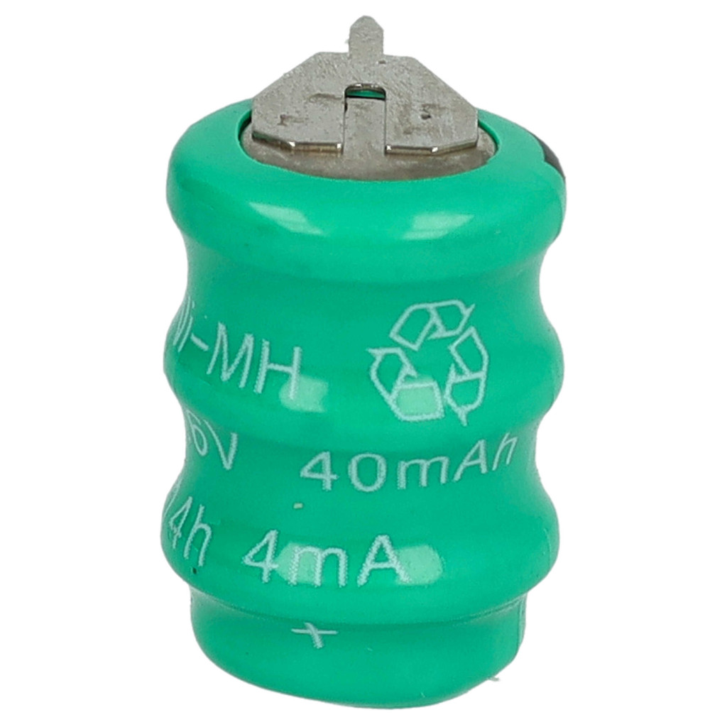 Rechargeable button cell for various devices such as calculators, watches, etc. Full functionality and compatibility with your device. Reliable performance in various electronic devices. Precisely manufactured to fit perfectly into your device. CE and RoHS certified - meets all operational safety guidelines. Cell type: V40H. High-quality NiMH cells for optimal device performance. Nickel-metal hydride batteries are similar to nickel-cadmium cells but have a higher energy density at the same voltage (approximately double). Due to their low internal resistance, NiMH batteries can be used in high energy-consuming devices at low cost, such as small LED lamps, toys, audio and photo equipment, phones, electric toothbrushes, shavers, power tools, and remote-controlled electric models.