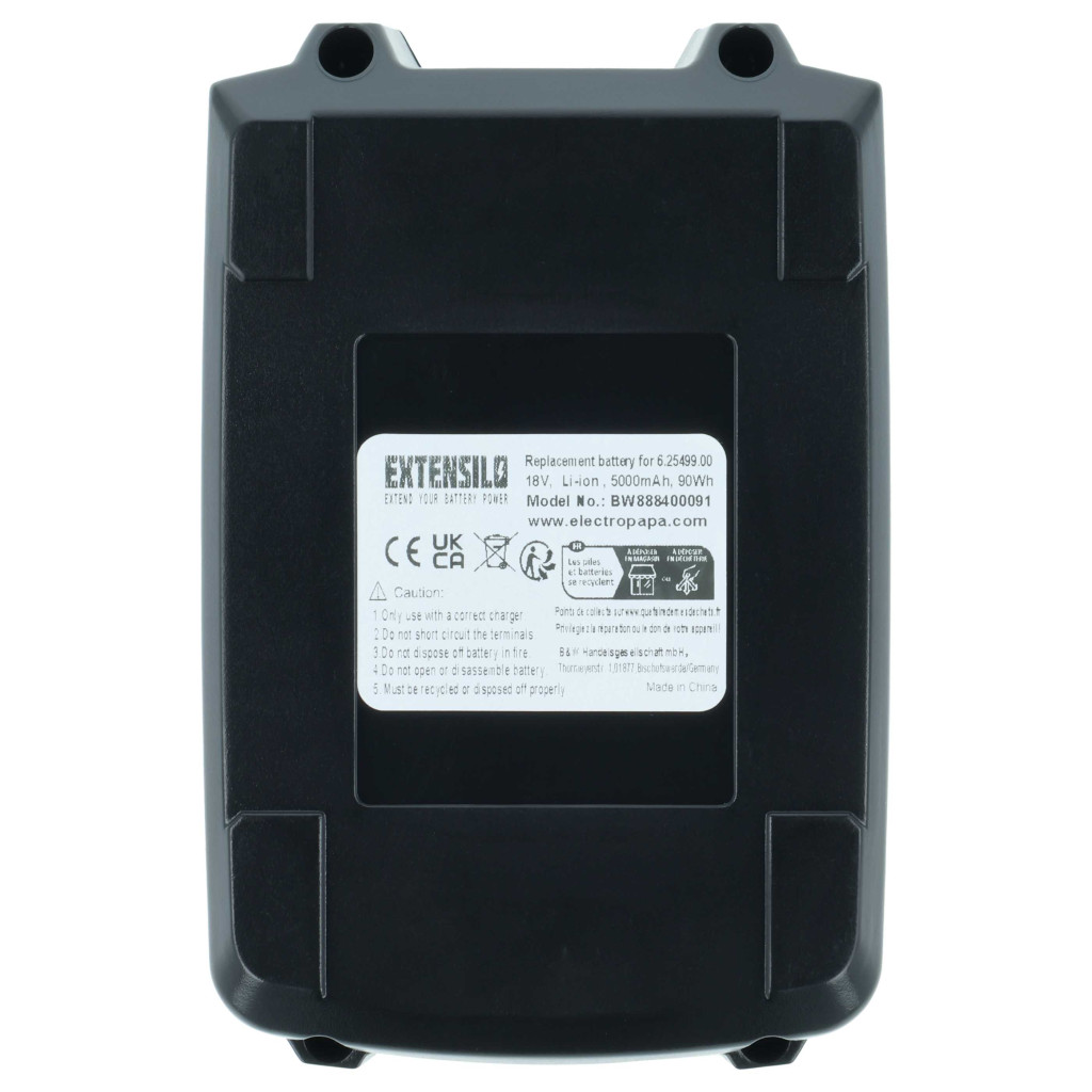 Compatible batteries that breathe new life into Steinel, Rothenberger, Baier, Eibenstock, Mafell, Rokamat, Starmix, Birchmeier, Collomix, Edding, Eisenblätter, Fischer, Haaga, Cembre, Prebena, Pressfit, Cleanfix, Metabo, Beck, Enerpac electric tools. High-quality spare part with optimal price-performance ratio. Reliable operation and full compatibility with electric tools. Precise manufacturing for perfect fit. CE and RoHS certification - meets all operational safety directives. No memory effect. High-quality Li-Ion cells for optimal tool performance. Lithium-ion batteries have high energy density and are among the strongest batteries. They have a low self-discharge rate compared to NiMH batteries and do not develop a memory effect. They do not require regular discharging, making them low maintenance. With proper storage, these rechargeable batteries have a long lifespan, are durable, and have a high number of charge cycles. Li-ion batteries are used in various portable devices with high energy demands, such as smartphones, notebooks, cameras, and electric tools. These batteries can also be used in radio-controlled models and telecommunications applications. Compatible devices: Baier ABDB 82, Baier ABDN 20, Baier ABDN 20-PV, Baier ABSS213L, Beck BN18-55 BC, Beck FSN33-90 BC, Beck NC90-40 BC, Birchmeier A 50 AC1, Birchmeier A50 AC2, Birchmeier A50 AC5, Birchmeier A 75 AC1, Birchmeier A 75 AC2, Birchmeier A 75 AC5, Birchmeier A 130 AC1, Birchmeier A 130 AC2, Birchmeier A 130 AC5, Birchmeier AS 1200 AC1, Birchmeier AS 1200 AC2, Birchmeier AS 1200 GR1, Birchmeier BM 1035 AC1, Birchmeier BM 1035 AC2, Birchmeier BM 1035 AC5, Birchmeier C 50 AC1, Birchmeier C 50 AC2, Birchmeier C 50 AC3, Birchmeier C 50 AC5, Birchmeier C 50 DC1, Birchmeier C 50 DC2, Birchmeier C 50 DC5, Birchmeier REA 15 AC1, Birchmeier REB 15 AC1, Birchmeier REB 15 AC2, Birchmeier REB 15 PC3, Birchmeier REC 15 AC1, Birchmeier REC 15 AC2, Birchmeier REC 15 AC5, Birchmeier REC 15 PC1, Birchmeier REC 15 PC4, Birchmeier REX 15 AC1, Birchmeier REX 15 AC2, Birchmeier REX 15 AC5, Cembre B-FC470, Cembre B-FL750, Cembre B-FL750ND, Cembre B-TC650-SC, Cleanfix HS770, Cleanfix RS05, Cleanfix S10 Plus, Cleanfix S10 Plus SL, Cleanfix Scrubby, Cleanfix Toro, Collomix PRO HT, Collomix Xo 10 NC, Collomix Xo 20 NC, Edding LO-G-PO-12, Edding Portable 12, Edding Portable 25, Edding Portable 50, Eibenstock EPG 300, Eibenstock EPG 300 A, Eibenstock EPG 400, Eibenstock EPG 400 A, Eisenblätter Band-IT, Eisenblätter HT Längsschleifmaschine, Eisenblätter HT Multifunktionsgerät, Eisenblätter HT Polierer, Eisenblätter HT Powerfeile, Eisenblätter HT Rohrbandschleifer, Eisenblätter Mini Max, Eisenblätter PRO HT Winkelschleifer, Eisenblätter Poly-PTX, Eisenblätter Rohr Max, Eisenblätter Varilex Polisher, Eisenblätter Varilex Pro HT, Enerpac BTW500 E, Enerpac BTW500B, Enerpac BTW1000B, Enerpac BTW1000E, Enerpac BTW2000B, Enerpac BTW2000E, Enerpac BTW3000, Enerpac BTW3000B, Enerpac BTW3000E, Enerpac BTW6000, Enerpac BTW6000B, Enerpac BTW6000E, Fischer FSS 18V, Fischer FSS18V 400 BL - Set 1, Fischer FSS 18V 400 BL - Set 2, Fischer FSS 18V 400 BL - Set 3, Fischer FSS 18V 400 BL - Set 4, Fischer FSS 18V 600 - Set 1, Fischer FSS 18V 600 - Set 2, Fischer FSS 18V 600 - Set 3, Fischer FSS 18V 600 - Set 4, Haaga 355 accu, Mafell A 10 M, Mafell A 18 M, Mafell A 18 M BL, Mafell A 18M bl PURE (T-MAX), Mafell ASB 18 M, Mafell ASB 18 M BL, Mafell ASB 18M bl PURE (T-MAX), Mafell HT Multifunktionsgerät, Mafell HT Powerfeile, Mafell K 55 18M BL, Mafell K 55 18M bl PURE (T-MAX), Mafell K 65 18M BL, Mafell K 65 18M bl PURE (T-MAX), Mafell KSS 40 18M BL, Mafell KSS 40 18M bl PURE (T-MAX), Mafell KSS 50 18M BL, Mafell KSS 50 18M bl PURE, Mafell KSS 60 18M BL, Mafell KSS 60 18M bl PURE, Mafell MT 55 18 M BL, Mafell MT 55 18M bl PURE (T-MAX), Mafell RO AG8000, Mafell ROCAM 4 Plus, Mafell RO DD60, Mafell RO FL180, Mafell RO ID400, Mafell ROMAX 4000, Mafell ROMAX Axial, Mafell ROMAX Compact TT, Mafell RO RH4000, Mafell ROSPIMATIC CL, Metabo ASE 18 LTX, Metabo BF 18 LTX 90, Metabo BHA 18 LT, Metabo BS 18, Metabo BS 18 LTX-X3 Quick, Metabo BS 18 LTX Impuls, Metabo BS 18 LTX Quick, Metabo KNS 18 LTX 150, Metabo KSA 18 LTX, Metabo RB 18 LTX 53, Metabo RB 18 LTX 60, Metabo S 18 LTX 115, Metabo SSD 18 LT/LTX, Metabo SSW 18 LT, Metabo SSW 18 LT/LTX, Metabo STA 18 LTX, Metabo STA 18 LTX 140, Metabo ULA 14.4-18, Metabo W 18 LTX 115, Metabo W 18 LTX 125, Prebena 12-36, Prebena PKT-8-PR100, Prebena PKT-8-PR100-LM, Prebena PKT-8-PR100-LM-SET, Prebena PKT-8-RKP100, Prebena PKT-8-RKP100-LM, Prebena PKT-8-RKP100-LM-SET, Prebena VITAS 100, Pressfit Lynx, Pressfit Lynx RR, Pressfit Puma, Pressfit Puma-RR, Rokamat Betonrüttler, Rokamat Dragonfly, Rokamat FOX, Rokamat Filzer, Rokamat Fox, Rokamat WDVS-Sauger, Rothenberger RO AG 8000, Rothenberger RO DD60, Rothenberger RO FL180, Rothenberger RO ID400, Rothenberger RO RH4000, Starmix ISC L 36-18V, Starmix ISC M 36-18V Safe, Starmix L18V TOP, Starmix Quadrix L 18V, Steinel GluePRO 18V, Steinel MobileHEAT 3