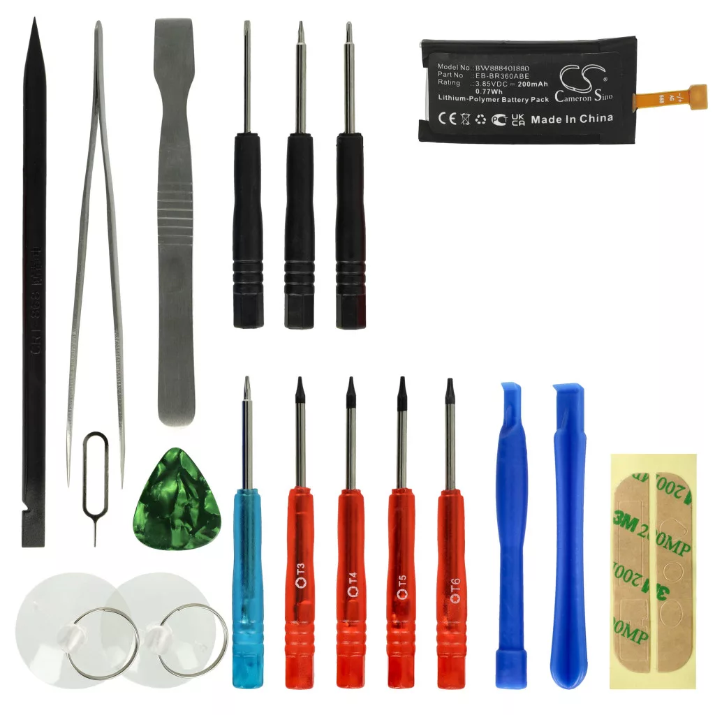 Compatible battery that breathes new life into your Samsung smartwatch. High-quality replacement part with optimal price-performance ratio. Reliable operation and full compatibility with HR monitors and fitness bracelets. The tool kit necessary for battery replacement is included in the shipping package. Precise manufacturing for a perfect fit in your device. CE and RoHS certification - meets all operational safety guidelines. No memory effect. High-quality Li-polymer cells for optimal device performance. Lithium-ion polymer batteries (often abbreviated as LiPo, Li-poly, lithium-poly, and LIP) belong to the Li-ion family. They have a low self-discharge rate, are long-lasting, and have high capacity. Compared to other Li-ion batteries, lithium polymer batteries have slightly lower energy storage capacity but are more resistant to overcharging. Polymer-based electrolytes allow these lightweight batteries to be made in a variety of shapes and designs, making them very versatile. LiPo batteries are commonly used in electric vehicles, remote-controlled electric models, smartphones, and notebook computers. Compatible devices: Samsung Gear Fit 2, Samsung Gear SM-R360