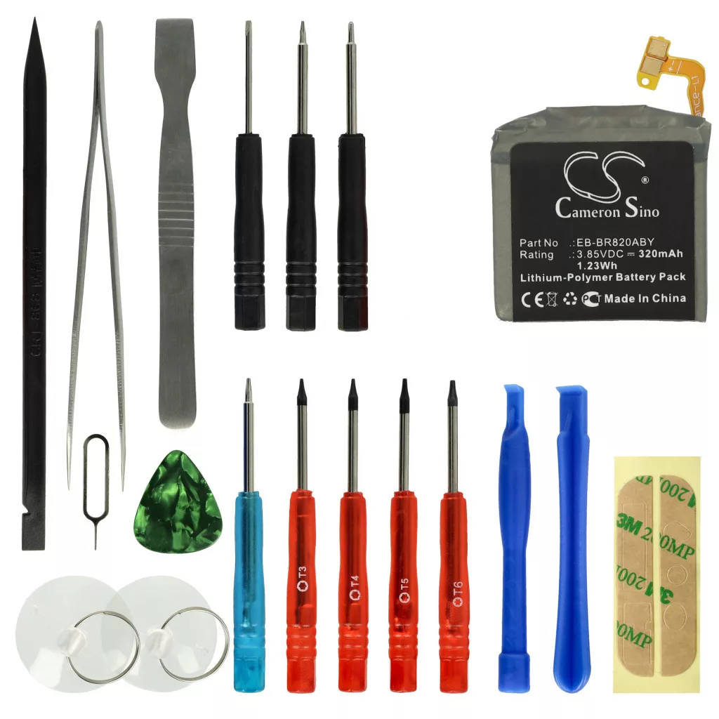 Compatible battery that breathes new life into your Samsung smartwatch. High-quality replacement part with optimal price-performance ratio. Reliable operation and full compatibility with HR monitors and fitness bracelets. The tool kit necessary for battery replacement is included in the shipping package. Precisely manufactured to fit perfectly into your device. CE and RoHS certified - meets all operational safety guidelines. No memory effect. High-quality Li-polymer cells for optimal device performance. Lithium-ion polymer batteries (often abbreviated as LiPo, Li-poly, lithium-poly, and LIP) belong to the Li-ion family. They have a low self-discharge rate, are durable, and have high capacity. Compared to other Li-ion batteries, lithium-polymer batteries have slightly lower energy performance but are more resistant to overcharging. Polymer-based electrolytes allow these lightweight batteries to be made in a variety of shapes and designs, making them extremely versatile. LiPo batteries are commonly used in battery-powered electric vehicles, remote-controlled electric models, smartphones, and notebook computers. Compatible devices: Samsung Galaxy Watch Active 2, Samsung Galaxy Watch Active 2 44mm, Samsung SM-R820, Samsung SM-R825