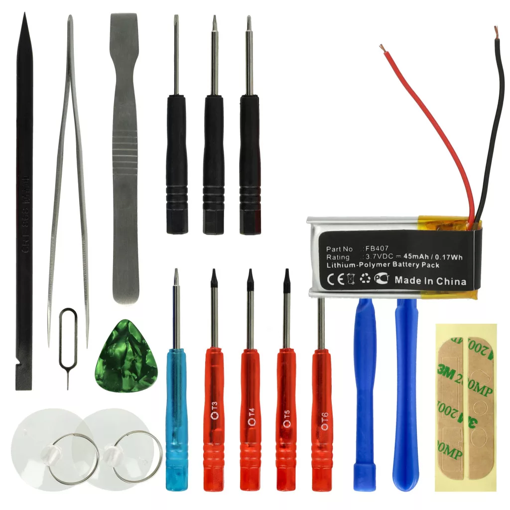 Compatible battery that breathes new life into your Fitbit smartwatch. High-quality replacement part with optimal price-performance ratio. Reliable operation and full compatibility with HR monitors and fitness bracelets. The tool kit needed for battery replacement is included in the package. Precisely manufactured to fit perfectly into your device. CE and RoHS certification - meets all operational safety guidelines. No memory effect. High-quality Li-polymer cells for optimal device performance. Lithium-ion polymer batteries (often abbreviated as LiPo, Li-poly, lithium-poly, and LIP) belong to the Li-ion family. They have a low self-discharge rate, are durable, and have high capacity. Compared to other Li-ion batteries, lithium-polymer batteries have slightly lower energy content but are more resistant to overcharging. Polymer-based electrolytes allow these lightweight batteries to be made in a variety of shapes and designs, making them very versatile. LiPo batteries are commonly used in battery-powered electric vehicles, remote-controlled electric models, smartphones, and notebook computers. Compatible devices: Fitbit Alta Activity, Fitbit Alta HR