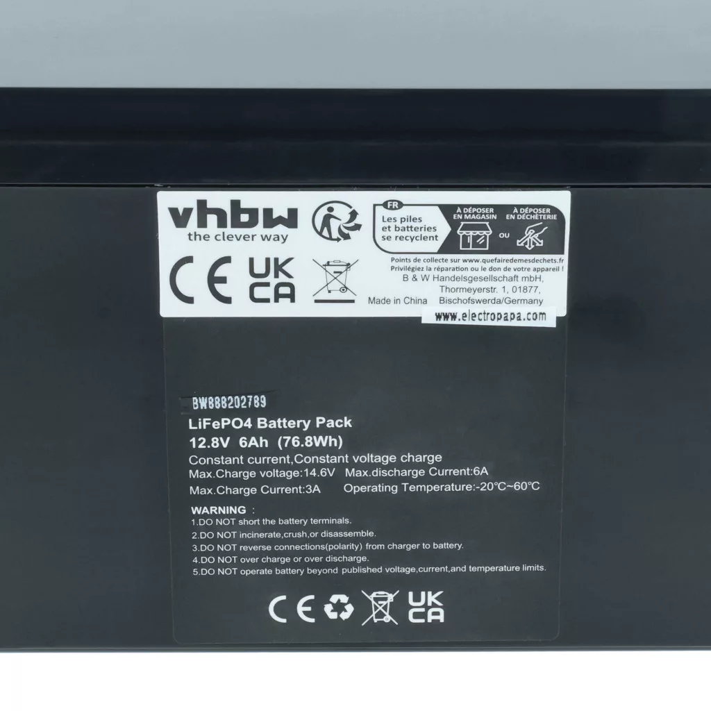 Compatible battery that breathes new life into your motorhome. High-quality replacement part with optimal price-performance ratio. Reliable operation and full compatibility with motorhomes and caravans. Precise manufacturing for perfect fit in your device. CE and RoHS certification - meets all operational safety directives. High-quality LiFePO4 cells for optimal device performance. Lithium iron phosphate (LFP or LiFePO4) batteries are thermally and chemically stable, improving the overall safety of batteries due to their strong resistance to short circuits and overheating. This makes them less likely to ignite. LiFePO4 batteries have a very stable discharge voltage, allowing them to deliver almost full performance until they are depleted. They offer a longer cycle life compared to other lithium-ion batteries, and their slower capacity loss rate ensures longer lifespan and low operating costs. Due to their thermal stability (i.e., they can be used and stored over a wide temperature range), they are suitable for various applications, such as starter batteries in vehicles or backup power sources.