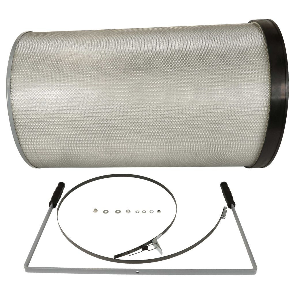 Description: Fine dust filter for your dust extraction machine. Well-built, easily replaceable. Full functionality and compatibility with the Holzmann dust extraction device. High air flow rate due to the large filter surface. Replaces Holzmann ABSFF8K, 9120058378515. If you are looking for a compatible and cost-effective device, you are in the right place with an efficient fine dust filter cartridge. Optimize the air quality in your workshop and protect yourself from harmful particles with our replacement filter for extraction systems. This spare filter is essential for working with cross-cut saws, grinding machines, and many other tools for effective dust removal. Our M5 fine dust filter cartridge captures harmful fine dust particles of at least 1 micron released during the processing of wood and other materials. This protects the airways and creates a clean, comfortable working environment. The fine dust filter is characterized by its robust design and easy installation. The high-quality material ensures a long lifespan, providing long-lasting filtration performance. The filter is equipped with a built-in rotating brush system that allows for efficient and quick cleaning, resulting in better filter performance. The filter can be conveniently and securely attached to the extraction system using the included metal strap.; Compatible devices: Holzmann ABS8000PRO Holzmann 9120058378515, Holzmann ABSFF8K