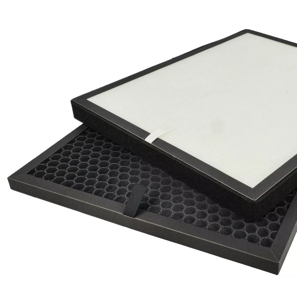 Reliable filter set for your air purifier, well-designed for easy replacement. Full functionality and compatibility with the Levoit air purifier. High filtration performance. Replaces the Levoit LV-PUR131-RF model. If you are looking for a compatible and cost-effective filter set, you are in the right place. Specifically designed to improve indoor air quality to create a comfortable and healthy environment. Our air purifier filters effectively remove pollutants and contaminants from indoor air, including dust, fine particles, pollen, allergens, and pathogens such as bacteria and mold spores. Additionally, cigarette smoke, exhaust gases, chemical vapors, and unwanted odors are also effectively removed from indoor air. THE SET INCLUDES: 2x activated carbon filter Optimal filtration performance Neutralizes cooking odors Material: activated carbon Color: black Dimensions (H x W x D): 34.4 x 29.3 x 4.2 cm 2x HEPA filter Removes ultra-fine particles from the air Improves the cleaning efficiency of the robot vacuum and reduces household odors Dimensions (H x W x D): 34.4 x 29.3 x 4.2 cm Color: black / white Regular replacement of filter units is recommended depending on usage frequency. With our replacement filter set, you can easily change your filters to ensure the high efficiency of the ventilation unit. CE and RoHS certification - meets all operational safety guidelines. Compatible devices: Levoit LV-PUR13, Levoit LV-PUR131, Levoit LV-PUR131S