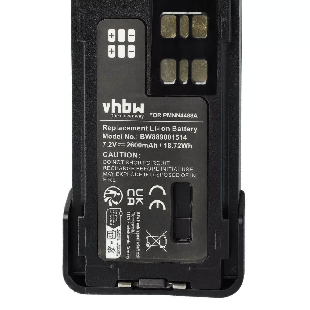Compatible batteries that breathe new life into your Motorola CB radio. High-quality spare parts with optimal price-performance ratio. Reliable operation and full compatibility with your radio device. Precise manufacturing for perfect fit. CE and RoHS certification - meets all operational safety guidelines. No memory effect. High-quality Li-Ion cells for optimal device performance. Lithium-ion batteries have high energy density and are among the strongest batteries. They have a low self-discharge rate compared to NiMH batteries and are not affected by the memory effect. They do not require regular discharging, making them maintenance-free. With proper storage, these rechargeable batteries are long-lasting, durable, and provide a high number of charge cycles. Li-ion batteries are used in various portable devices that have high energy demands, such as smartphones, notebook computers, cameras, and power tools. These batteries can also be used in radio-controlled models and telecommunications applications. Compatible devices: Motorola DP2000, Motorola DP2400, Motorola DP2600, Motorola DP4400E, Motorola XiR P6600, Motorola XiR P6620, Motorola XiR P8600, Motorola XiR P8620, Motorola XiR P8660, Motorola XiR P8668