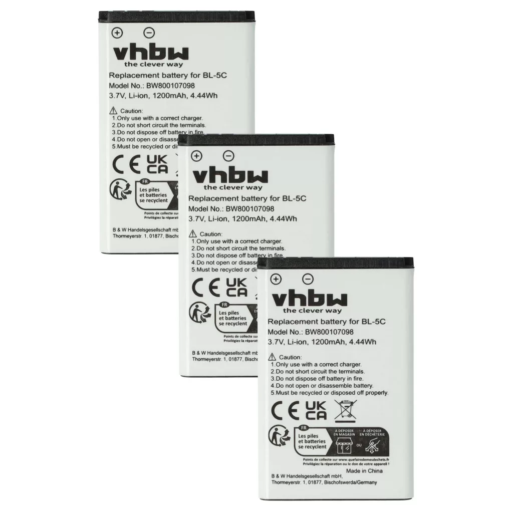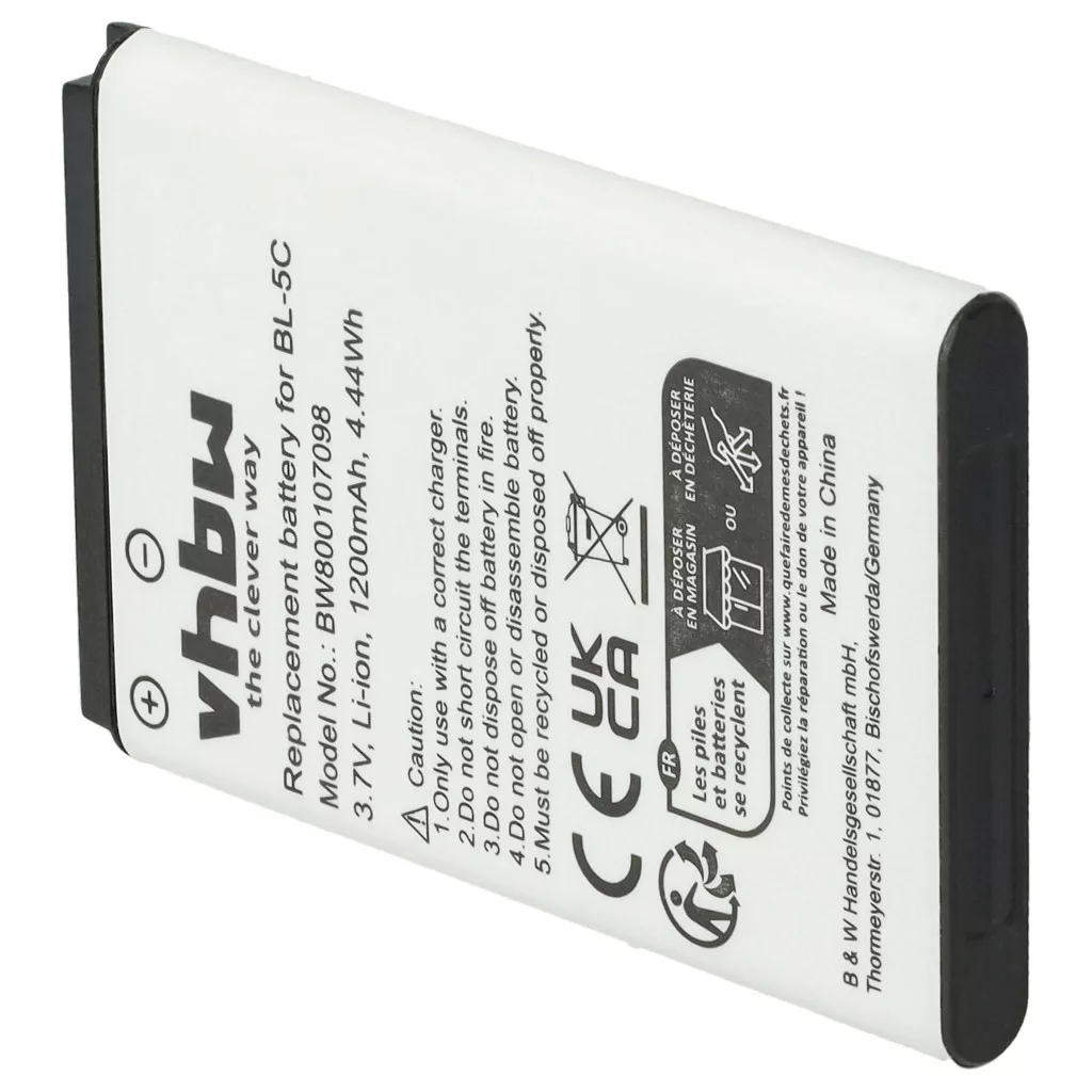 Compatible devices: Agfeo DECT 60, Agfeo DECT 60 IP, Agfeo DECT 65 IP, Agfeo DECT 70 IP, Agfeo DECT 75 IP, Agfeo DECT 77 IP, Agfeo DECT 78 IP, Alcatel 3BN67330AA, Alcatel 8232, Alcatel 8232 DECT, Alcatel 8232S DECT, Alcatel 8234 DECT, Alcatel 8242 DECT, Alcatel 8244 DECT, Alcatel 8254 DECT, Alcatel 8262 DECT, Alcatel DECT 8232, Alcatel DECT 8242, Alcatel DECT 8262, Alinco DJ-CH20, Alinco DJ-CH20B, Alinco DJ-CH20S, Alinco DJ-CH27, Alinco DJ-CH27B, Alinco DJ-CH27S, Alinco DJ-CH201, Alinco DJ-CH201B, Alinco DJ-CH201S, Alinco DJ-CH202, Alinco DJ-CH202L, Alinco DJ-CH202M, Alinco DJ-CH202S, Alinco DJ-CH271, Alinco DJ-CH271B, Alinco DJ-CH271S, Alinco DJ-CH272, Alinco DJ-CH272L, Alinco DJ-CH272M, Alinco DJ-CH272S, Alinco DJ-FX-446, Alinco DJ-FX45, Alinco DJ-FX446, Anycool W02 GSM, Avaya 4027, Avaya 4070, Avaya NTTQ81EAE6, Avaya NTTQ82EAE6, Avus C12, Avus C22, Beatfoxx Beachside BS-20BTB, Beghelli SLV20+, Beghelli SLV30, Belkin Tizi Mobile DVB-T Tuner, Brondi Amico 2, Brondi Amico 2 Diamond, Brondi Amico Elegant 2, Brondi Amico Flip 2, Brondi Amico Mio, Brondi Amico Mio 4G, Brondi Amico Radio, Brondi Amico Semplice, Brondi Amico Simplex, Brondi Amico Simply, Brondi Amico Sport, Brondi Amico Vero, Brondi Amico Vero 2, Brondi Big Slide, Brondi Duke S, Brondi Dunes, Brondi Elegant Friend 2, Brondi Eros, Brondi Magnum 4, Brondi Oyster S, Brondi Simplex Freund, Cect V10, Doro 330, Doro 330 GSM, Doro 2414, Doro 2415, Doro 2424, Doro DFC-0150, Doro DFC-0190, Doro Domo, Doro Easy 5 Plus, Doro HandleEasy 330, Doro HandleEasy 330 GSM, Doro PhoneEasy 332, Doro PhoneEasy 332 GSM, Doro PhoneEasy 6030, Doro PhoneEasy 6031, Doro PhoneEasy 6520, Doro PhoneEasy 6521, Doro Primo 215, Doro Primo 405, Emporia Telme C151, Emporia Telme T200, Emporia Telme X200, EnGenius EP-802, EnGenius Freesty, EnGenius Freesty l2, F-Fook F669, Funktel D11, Funktel FC11, Hisense CS668, Hqrs 777, Hyundai BP-D125, Hyundai MB-D125, Hyundai MB-D125 Dual Sim, McGrey MC-50B, McGrey MC-50BT-BK, Media-Tech MT842, Media-Tech MT842B, Media-Tech MT842R, Media-Tech MT842W, Media-Tech MT843, Media-Tech MT843KG, Media-Tech MT843KR, Media-Tech MT843WB, Media-Tech MT845, Media-Tech MT847KB, Media-Tech MT847KG, Media-Tech MT847KR, Micromax E390, Micromax X335, Mitel 5610, Mobiado Professional, Mobiado Professional CAMO, Mobiado Professional EM, NEC G266, NEC G355, NEC G566, NEC G566D, NEC G955, NEC GX266, NEC GX566, NEC Gx77, NEC ML440, NEC SV9100, NGM Boris, NGM Clio, NGM Dandy, NGM Joy, NGM Maxx, NGM Oscar, NGM Oscar Flip, NGM Oscar V2, NGM PM1111, NGM Play, NGM Premier, NGM Roger, NGM Storm, NGM Swat, NGM Victor, NGM W13-NM8819, Nokia 100, Nokia 101, Nokia 105 (2023), Nokia 106 Dual Sim, Nokia 207, Nokia 208, Nokia 215, Nokia 220 Dual Sim, Nokia 1100, Nokia 1101, Nokia 1110, Nokia 1110i, Nokia 1112, Nokia 1600, Nokia 1650, Nokia 1800, Nokia 2300, Nokia 2310, Nokia 2323 Classic, Nokia 2330 Classic, Nokia 2600, Nokia 2610, Nokia 2626, Nokia 2650, Nokia 2652, Nokia 2700 Classic, Nokia 2710 Navigation Edition, Nokia 2730 Classic, Nokia 3100, Nokia 3109 classic, Nokia 3110 classic, Nokia 3110 evolve, Nokia 3120, Nokia 3650, Nokia 3660, Nokia 5130 XpressMusic, Nokia 6030, Nokia 6085, Nokia 6086, Nokia 6230, Nokia 6230i, Nokia 6270, Nokia 6555, Nokia 6600, Nokia 6630, Nokia 6670, Nokia 6680, Nokia 6681, Nokia 6820, Nokia 6822, Nokia 7600, Nokia 7610, Nokia C1, Nokia C1-01, Nokia C1-02, Nokia C2, Nokia C2-01, Nokia E50, Nokia E60, Nokia N-Gage N70, Nokia N71, Nokia N72, Nokia N91, Nortel 4027, Nortel 4070, Nortel NTTQ81EAE6, Nortel NTTQ82EAE6, Olympia Becco, Olympia Caro, Olympia Caro Rot, Olympia Chic, Olympia Chic 2, Olympia Chic 2122, Olympia Chic II, Olympia Komfort, Olympia VIVA 2129, Olympia Vox, Onext Active Phone, Onext Care-Phone 2, Onext Care-Phone 3, Onext Care-Phone 4, Onext Hit, Onext Simple, Onext Skylink Classic, Oricom ezy100, Oricom ezy120, Philips Avent SCD600, Philips Avent SCD600/10, Philips Avent SCD610, Poly Rove 30, Poly Rove 40, Poly Rove 2200-86810-001, Prunus L-218AM, RTX 8630, RTX 8830, Saiet Pronto Max, Saiet SCUDOtre+, Simvalley Easy 5, Simvalley SX-330, Simvalley SX-350, Simvalley SX330 Dual Sim, Spice C5300, Spice M6464, Spice QT-52, Spice S3636, Switel M160, Switel M600D Classico, T-Com Octophone 8232, T-Com Octophone 8242, T-Com Sinus A806, Tecsun ICR-100, Telefunken FHD 170/5, Telekom A806, Tivdio V-113, Tivdio V-115, Toshiba Camileo P20, Toshiba IP4100, Uniden EXP1240, Uniden EXP1240H, Vertical CP2001 IP DECT, Vertical RTX CT8010, Vodafone 702NK, Vodafone 702NKII,Vodafone V804NK, teXet TM-502R, teXet TM-503RS, teXet TM-B100, teXet TM-B110, teXet TM-B200, teXet TN-606, 1000059, Alcatel 3BN67332AA, Alcatel 10000058, Alcatel RTR001F01, Alinco EBP-80, Alinco EBP-90, BS-16, BT-214, BT-N3650, CAT 1ICP5/3450 1S1P, Doro DBR-800A, Doro DBR-800D, EnGenius FREESTYL2BA, Funktel A051, H15132, LI3795bkG, MP-S-A1, Mitel 51015404, NEC Q24-FR000000113082, Nokia 0106G20624418, Nokia 0670397417535, Nokia BL-5C, Nokia BL-5CA, Nokia BL-5CB, Nokia RTX 60020436, Nortel 690104, RCB01P02, RCB215, RCB405, RTR001F02, RTX 10000058, SIB-11, SIB-16, Sigmatel 20090415-1, Snom 10000058, TB-BL5C, Telekom A051, Toshiba 10000060, Uniden 1000060, Vodafone NKBF01
