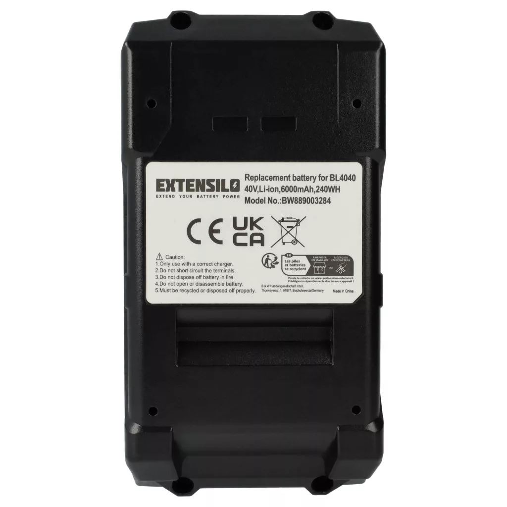 Compatible batteries that breathe new life into your Makita circular saw. High-quality spare part with optimal price-performance ratio, reliable functionality, and full compatibility with your power tool. Precisely manufactured for a perfect fit. CE and RoHS certified - meets all operational safety directives. No memory effect. High-quality Li-Ion cells for optimal tool performance. Lithium-ion batteries have high energy density and are among the strongest batteries. They have a low self-discharge rate compared to NiMH batteries and do not suffer from memory effect. They do not require regular discharging, making them low maintenance. With proper storage, these rechargeable batteries are long-lasting, durable, and have a high number of charge cycles. Li-ion batteries are used in various portable devices that have high energy demands, such as smartphones, notebook computers, cameras, and power tools. These batteries can also be used in radio-controlled models and telecommunications applications. Compatible devices: Makita 40V MAX XGT, Makita CF001G, Makita DF001G, Makita GA003G, Makita GA005G, Makita GA011G, Makita GA013G, Makita HP001G, Makita HR001G, Makita HR003G, Makita HS004G, Makita TD001G, Makita W001G