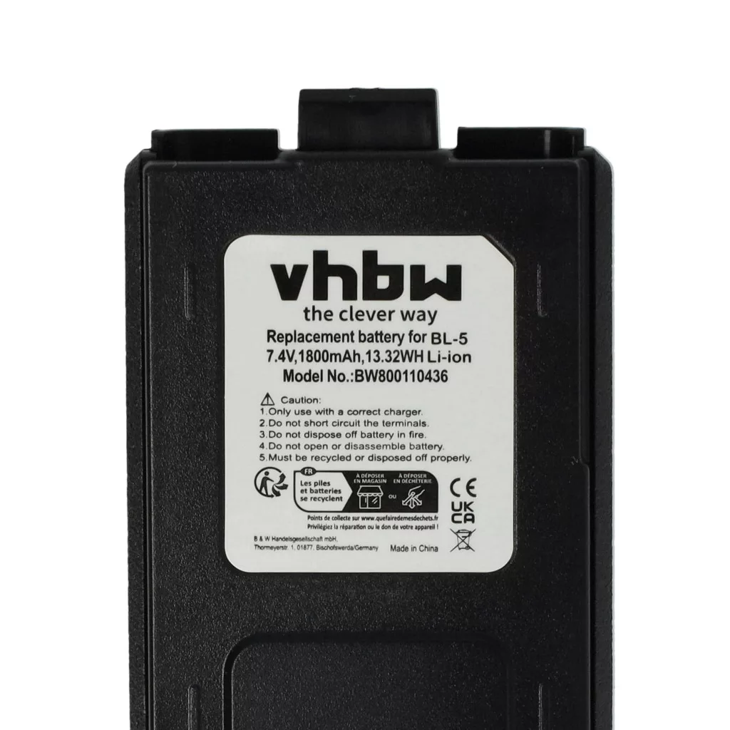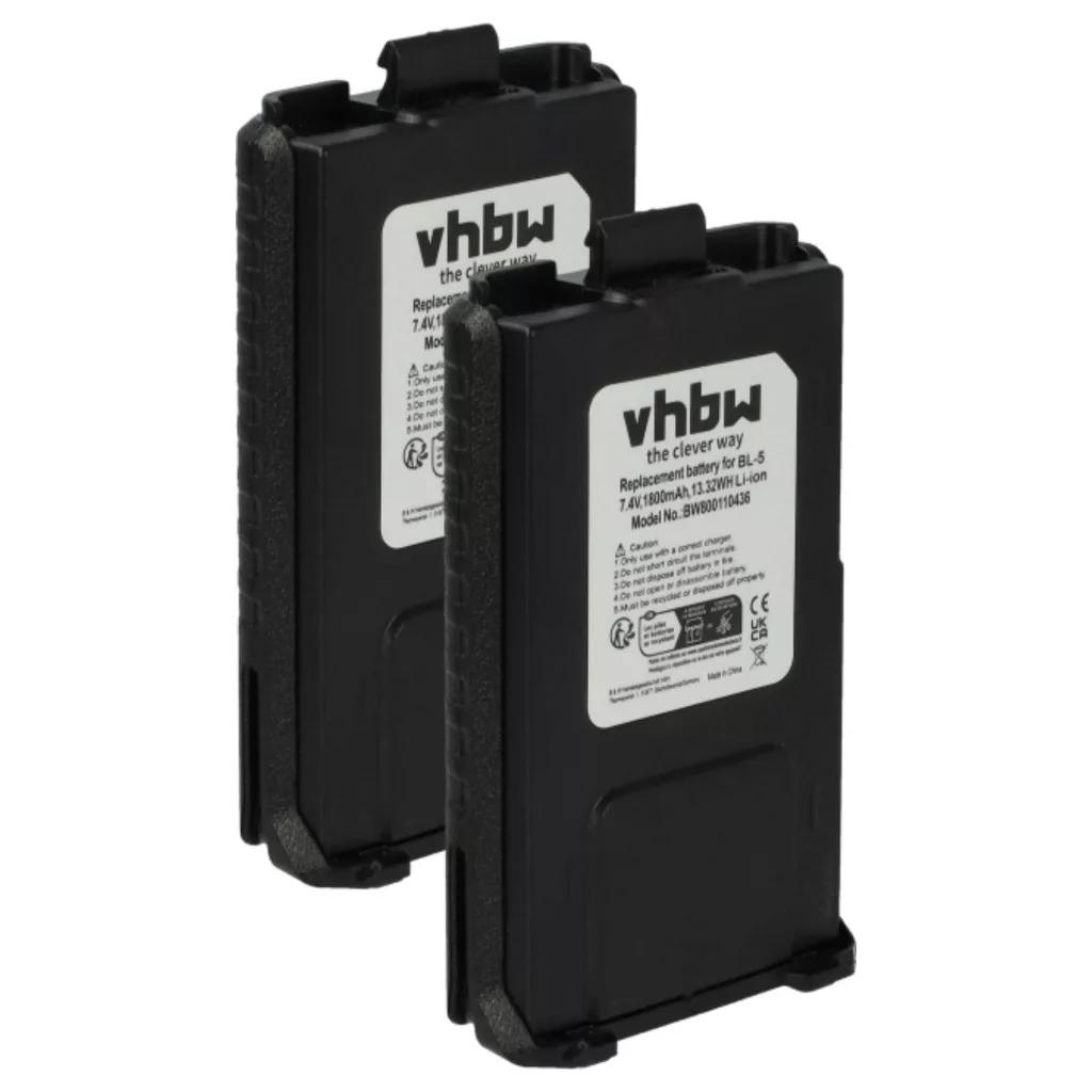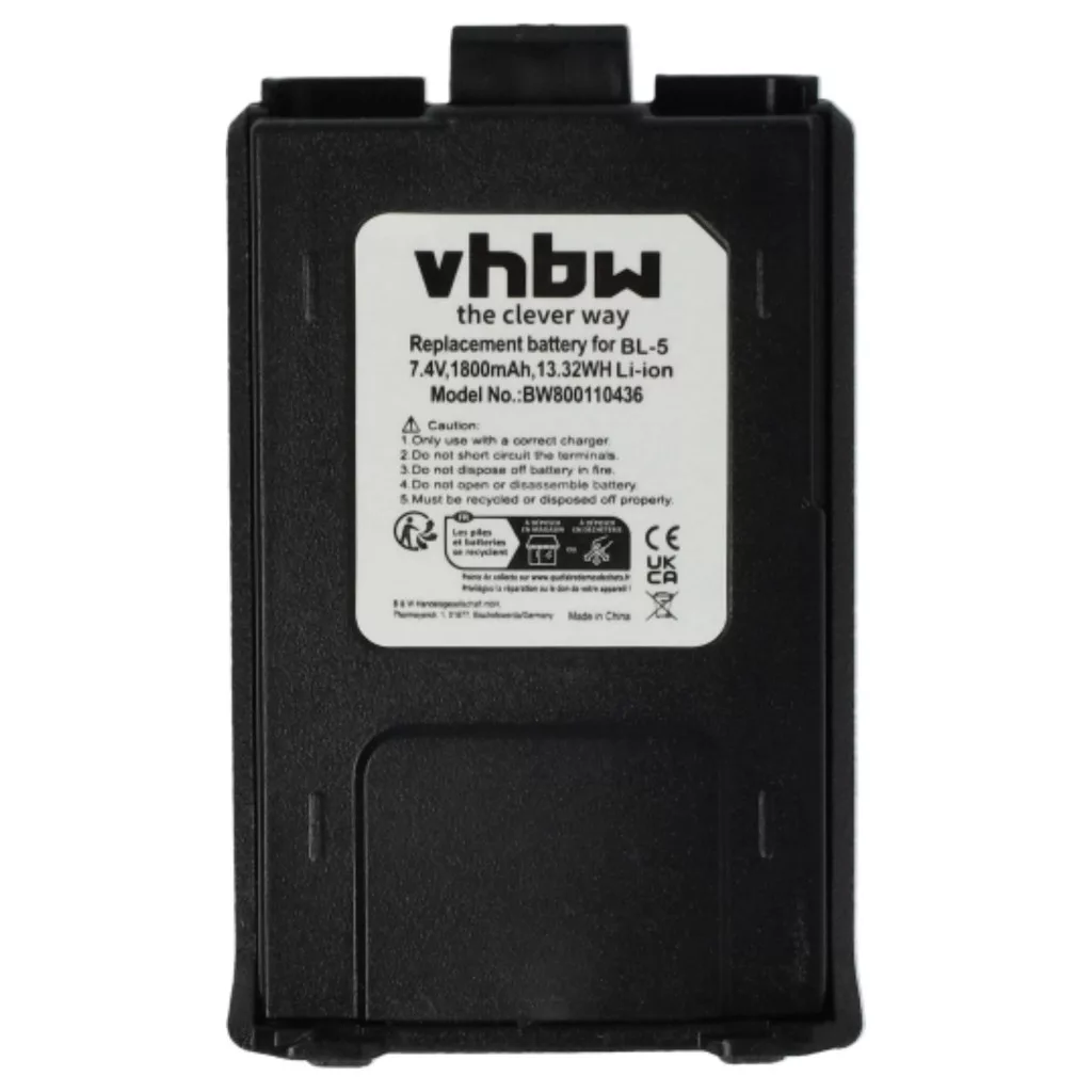 Compatible batteries that breathe new life into your TYT / Pofung / Baofeng CB radio. High-quality replacement parts with optimal price-performance ratio. Reliable operation and full compatibility with your radio device. Another back cover is required (included in the delivery). Precisely manufactured to fit perfectly into your device. CE and RoHS certified - meets all operational safety directives. No memory effect. High-quality Li-Ion cells for optimal device performance. Lithium-ion batteries have high energy density and are among the strongest batteries. Compared to NiMH batteries, they have a low self-discharge rate and are not affected by the memory effect. They do not require regular discharging, thus requiring low maintenance. With proper storage, these rechargeable batteries are long-lasting, durable, and have a high charge cycle count. Li-ion batteries are used in various portable devices with high energy demands, such as smartphones, notebook computers, cameras, and power tools. These batteries can also be used in radio-controlled models and telecommunications applications. Compatible devices: Baofeng BF-F8, Baofeng BF-F9, Baofeng UV-5R, Baofeng UV-5RA, Baofeng UV-5RE, Pofung UV-5R, Pofung UV-5RA, Pofung UV-5RE, TYT TH-F8, TYT TH-F9