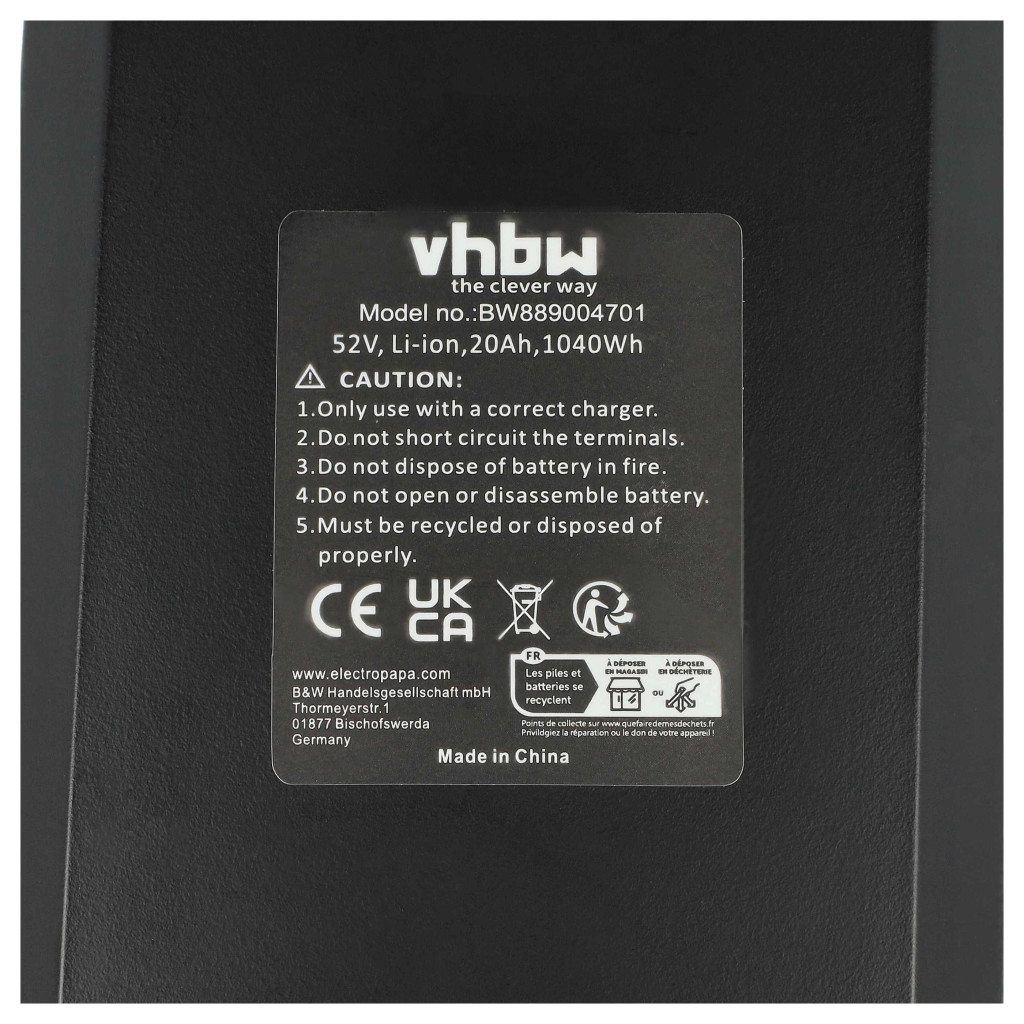 Compatible battery that breathes new life into your e-bike. High-quality spare part with optimal price-performance ratio. Reliable operation and full compatibility with your electric bicycle. Features an intelligent charge level indicator. The appropriate charger is included in the delivery. Precisely manufactured for a perfect fit to your device. CE and RoHS certified - meets all operational safety directives. No memory effect. High-quality Li-Ion cells for optimal device performance. Lithium-ion batteries have high energy density and are among the strongest batteries. They have a low self-discharge rate compared to NiMH batteries and do not suffer from memory effect. They do not require regular discharging, making them low maintenance. With proper storage, these rechargeable batteries are long-lasting, durable, and have a high number of charge cycles. Li-ion batteries are used in various portable devices with high energy demands, such as smartphones, notebook computers, cameras, and power tools. These batteries can also be used in radio-controlled models and telecommunications applications. Suitable for various e-bike, electric bicycle, and pedelec models with 250 W - 1000 W motors. Please note: Equipped with a mounting bracket/battery holder - can be mounted on most bicycle down tubes that have screw holes for bottle holders. Compatible devices: E-Bike, Electric bicycle, Pedelec models with 250 W - 1000 W motors.