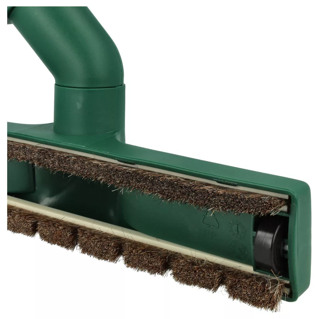 Floor nozzle for your vacuum cleaner that provides full functionality and compatibility with Vorwerk vacuum cleaners. It fits precisely for easy installation, offering reliable and thorough cleaning. If you are looking for a compatible and cost-effective floor nozzle, you are in the right place. The bristles are synthetic, making them more resistant and durable. With its two smoothly rolling wheels, the nozzle glides safely over sensitive floors without leaving scratches. Thanks to the swivel joint, the nozzle is extremely flexible and provides maximum comfort during cleaning. This nozzle is particularly suitable for gentle yet thorough cleaning of hard floors such as parquet, tiles, or laminate. It ensures a clean environment and a hygienic home. Our vacuum nozzles are well-designed and reliably perform their tasks efficiently. Depending on the type of nozzle, they are ideal for cleaning carpets, hard floors, upholstery, skirting boards, etc. Our range includes turbo nozzles, mini nozzles, mop nozzles, short flow nozzles, pet hair nozzles, and much more. Our nozzles can be used as universal branded products for all vacuum cleaners (please consider the connection size references), but they also fit precisely with well-known brand vacuum cleaners. The diversity of our product selection guarantees that you will find the right accessory for your device. CE and RoHS certified - meets all operational safety directives. Compatible devices: Vorwerk Kobold 118, Vorwerk Kobold 119, Vorwerk Kobold 120, Vorwerk Kobold 121, Vorwerk Kobold 122, Vorwerk Tiger 250, Vorwerk Tiger 251