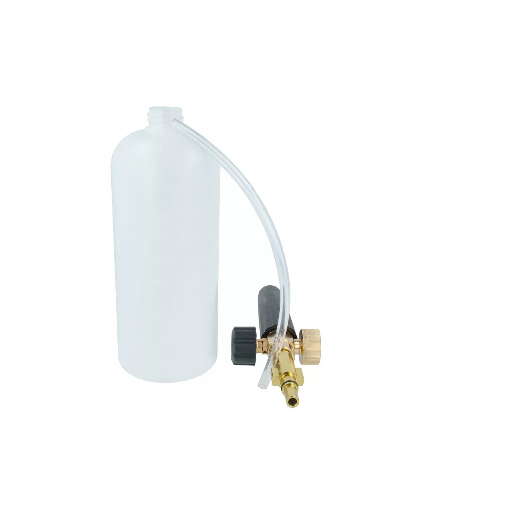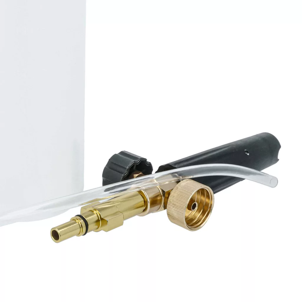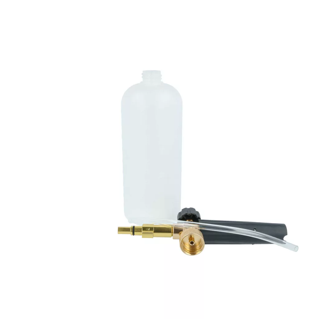 Reliable foam cannon for your high-pressure washer. Well-designed for easy application, fully functional and compatible with, for example, Bosch high-pressure cleaners. Excellent quality design and durability. Long-lasting foam nozzle for your high-pressure cleaner. If you are looking for a compatible and cost-effective foam sprayer, you are in the right place. Our foam nozzle is an ideal accessory for high-pressure cleaners to apply cleaning agents effectively and thoroughly. This foam nozzle creates a dense, even foam that distributes optimally on surfaces and effectively removes stubborn dirt. It consists of a high-quality foam nozzle, a robust suction hose, and a sturdy detergent tank. The foam nozzle can be assembled in a few steps: First, securely attach the foam nozzle to the high-pressure washer. Then connect the suction hose to the nozzle and insert it into the detergent-filled tank. Once all components are securely fastened, the foam nozzle is ready for use. The thick foam ensures that the cleaning agent stays on the surface longer, allowing for effective removal of dirt and deposits. The foam nozzle is perfect for cleaning vehicles, facades, terraces, sidewalks, and other outdoor surfaces that need stubborn dirt removed. Due to its ease of use and effective foam technology, the foam cannon is an essential tool for anyone who values thorough yet gentle cleaning. CE and RoHS certified - meets all operational safety directives. Compatible devices: Black & Decker, Bosch AQT 33-10, Bosch AQT 33-11, Bosch AQT 35-12, Bosch AQT 37-13, Bosch AQT 40-12, Bosch AQT 42-13, Bosch AQT 45-14, Bosch Advance Aquatak 135, Bosch Advance Aquatak 150, Bosch Advance Aquatak 160, Bosch Easy Aquatak 100, Bosch Easy Aquatak 110, Bosch Easy Aquatak 120, Bosch Universal Aquatak 125, Bosch Universal Aquatak 135, Neo, Norse, Ryobi TECHNICAL SPECIFICATIONS: