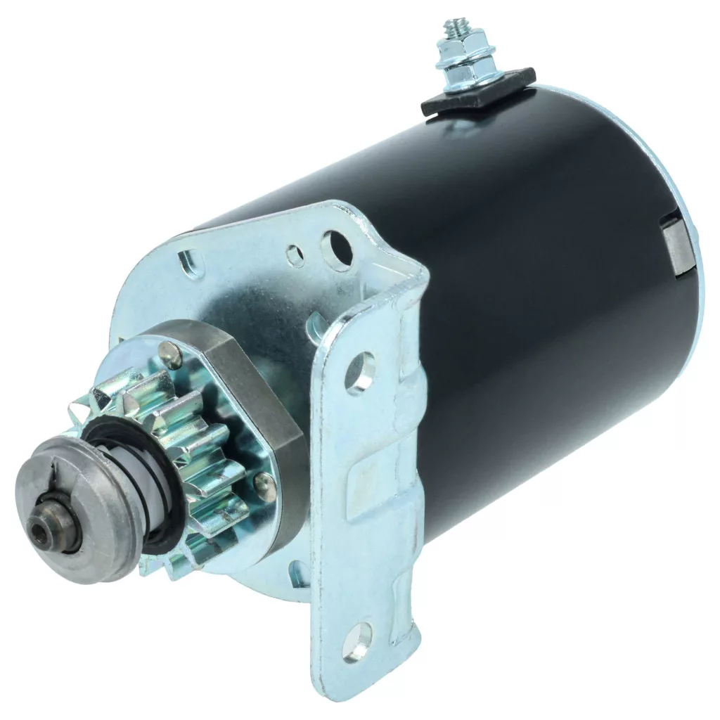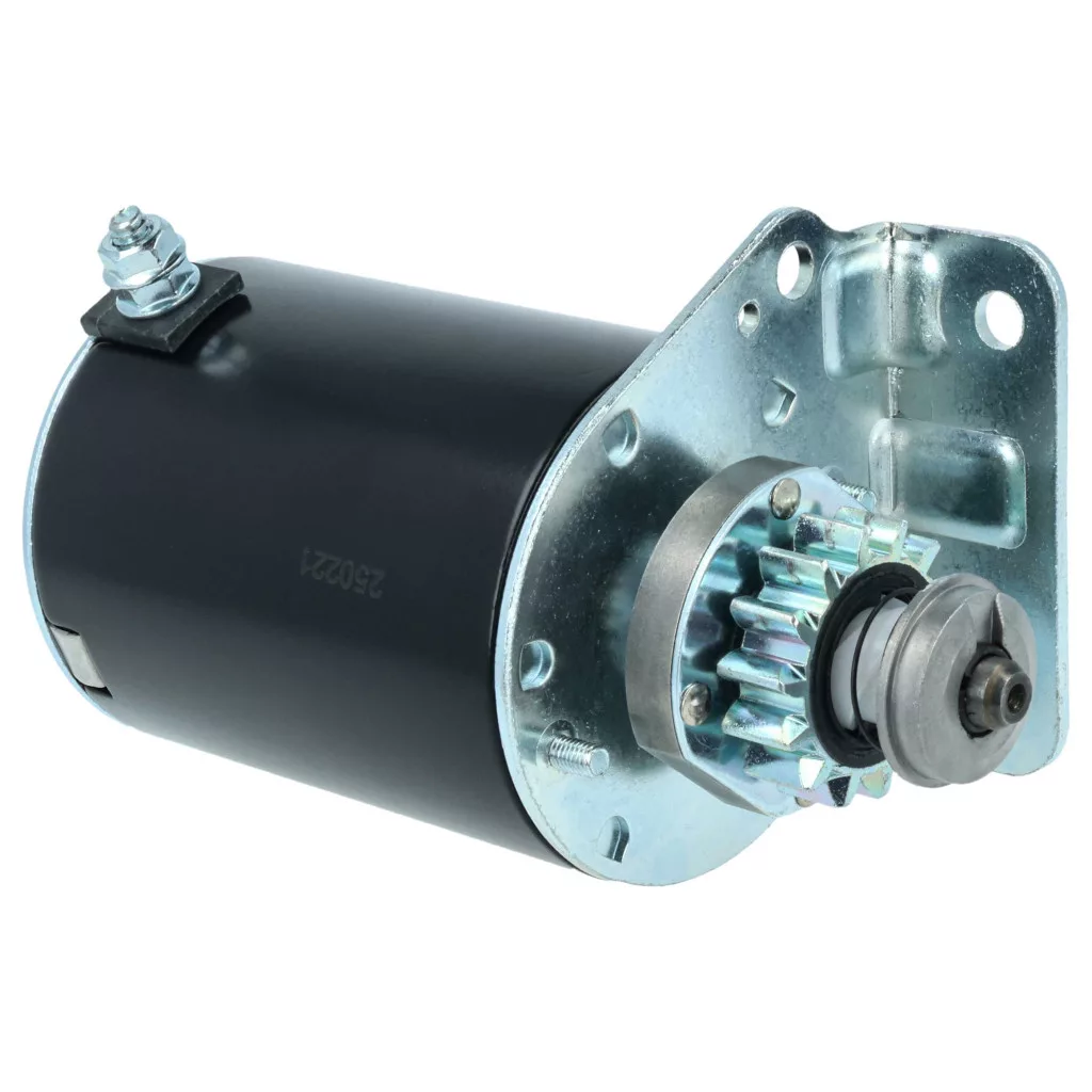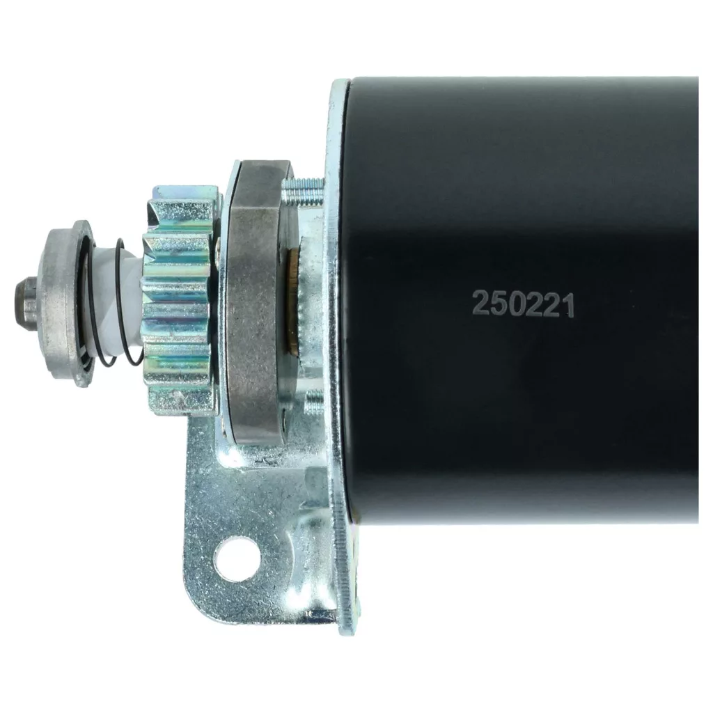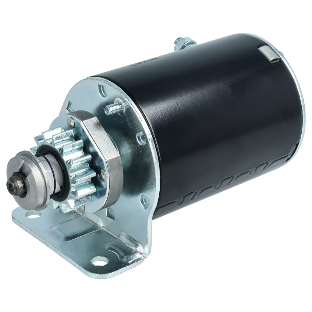 Reliable starter motor for the engine, well designed for easy replacement. Full functionality and compatibility with, for example, Briggs & Stratton engines. Quick and safe engine starting without delay. Replaces Briggs & Stratton 309A, 309, 593934, 693551, 693552 / John Deere LG693551, SE501848 / Cargo 114519 / Dixie MS6006, 20603115 / Lester 5777, 5932 / Wood Auto STR88010 models. If you are looking for a compatible and cost-effective starter motor, you are in the right place. Start your engine quickly and reliably with our high-quality starter motor. Equipped with a metal 14-tooth gear that ensures optimal grip and durable performance, even with frequent use. Thanks to the 12-volt voltage, the motor starts powerfully, even in cold weather or after prolonged inactivity. Precise manufacturing makes installation easy, and no special tools or technical knowledge are required. This spare part is ideal for lawn mowers, lawn tractor or other motorized machines, as it combines reliability, robust construction, and ease of handling to get you back up and running faster. CE and RoHS certified - meets all operational safety guidelines. Compatible devices: Briggs & Stratton 282H07-0110-E1, Briggs & Stratton 282H07-0110-E2, Briggs & Stratton 282H07-0111-E1, CubCadet 1170, CubCadet 1600, CubCadet 1800, CubCadet LT1018, CubCadet RZT17, CubCadet RZT42, CubCadet Z-Force 42, John Deere EUROPA 1642HS, John Deere L100, John Deere L105, John Deere L107, John Deere LA105, John Deere LA115, John Deere LA125, John Deere SABRE 14.542GS, John Deere SABRE 1642HS, John Deere SABRE 1742GS, John Deere SABRE 1742HS, New Holland MZ MZ14H, New Holland MZ MZ16H, New Holland MZ MZ18H, SCOTTS Ohne Angabe L1742, SCOTTS Ohne Angabe S1742, Sabo 107-17HS, Sabo 108-14.5, Sabo 108-17HS, Toro LAWN-BOY PRECISION Z310, Toro LAWN-BOY PRECISION Z330LX, Toro MZ14H, Toro MZ16H, Toro MZ18H, Toro TIMECUTTER 14-38Z, Toro TIMECUTTER 16-42Z, Toro TIMECUTTER 16-44Z, Toro TIMECUTTER 17-42Z, Toro TIMECUTTER 17-44ZX, Toro TIMECUTTER 18-44Z, Toro TIMECUTTER 18-44ZX, Toro TIMECUTTER Z380, Toro TIMECUTTER Z420, Toro TIMECUTTER Z480, Toro TIMECUTTER ZD380, Toro TIMECUTTER ZD420, Toro WHEEL HORSE 12-32XL, Toro WHEEL HORSE 12.5-32XLE, Toro WHEEL HORSE 13-32G, Toro WHEEL HORSE 13-32H, Toro WHEEL HORSE 13-32XLE, Toro WHEEL HORSE 14-38HXLE, Toro WHEEL HORSE 15-38HXL, Toro WHEEL HORSE 16-38G, Toro WHEEL HORSE 16-38H, Toro WHEEL HORSE 16-38HXL, Toro WHEEL HORSE 16-38HXLE, Toro WHEEL HORSE 16-38XL, Toro WHEEL HORSE 16-38XLE, Toro WHEEL HORSE 17-38HXLE, Toro WHEEL HORSE 17-44H, Toro WHEEL HORSE 17-44HXL, Toro WHEEL HORSE 17-44HXLE, Toro WHEEL HORSE 18-44HXLE, Toro WHEEL HORSE 150-DH, Toro WHEEL HORSE 170-DH, Toro WHEEL HORSE DH200, Toro WHEEL HORSE DH210, Toro WHEEL HORSE G132, Toro WHEEL HORSE H132, Toro WHEEL HORSE XL320, Toro WHEEL HORSE XL380, Toro WHEEL HORSE XL380H, Toro WHEEL HORSE XL440H