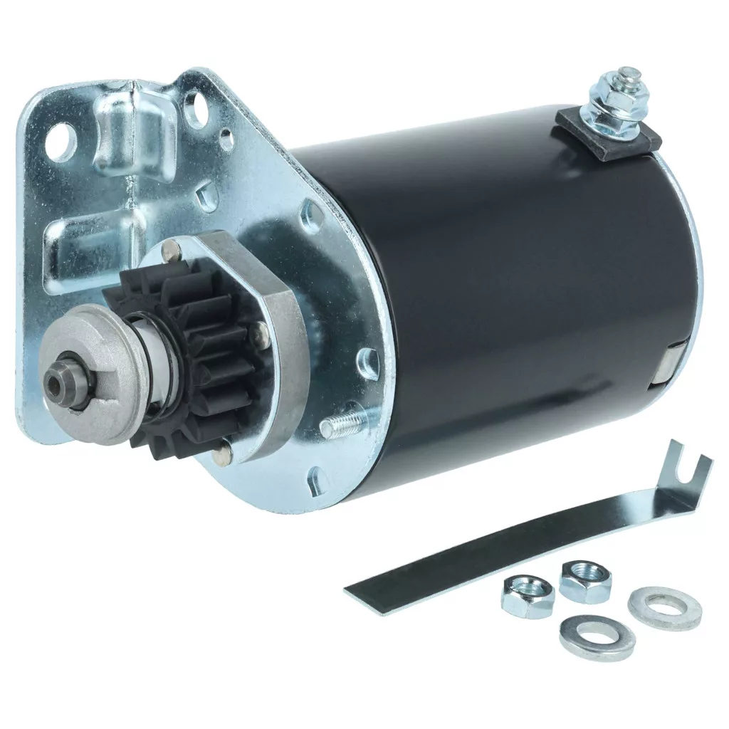 Reliable starter motor for the engine, well designed for easy replacement. Full functionality and compatibility with John Deere engines. Quick and safe engine starting without delay. Replaces Briggs & Stratton models 21B807, 31G777, 393499, 394943, 399169, 490420, 494148, 494198, 494490, 494990, 497401, 499521, 6390551. If you are looking for a compatible and cost-effective starter motor, you are in the right place. Start your engine quickly and reliably with our high-quality starter motor. The 16-tooth gear made of plastic ensures optimal grip and long lifespan, even with frequent use. Thanks to the 12-volt voltage, the motor starts powerfully, even in cold weather or after long inactivity. Precise manufacturing makes installation easy, and no special tools or technical knowledge are required. This spare part is ideal for lawn mowers, lawn tractor or other machines with 11 - 16 horsepower engines, as it offers reliability, robust construction, and ease of handling to get your machines back up and running faster. CE and RoHS certified - meets all operational safety guidelines. Compatible devices: John Deere AG 111 85-79, John Deere AG 111H 84-82, John Deere AG L118 22HP, John Deere AM 38136, John Deere AM 39285, John Deere AM 106883, John Deere LG 490420, John Deere LG 497401