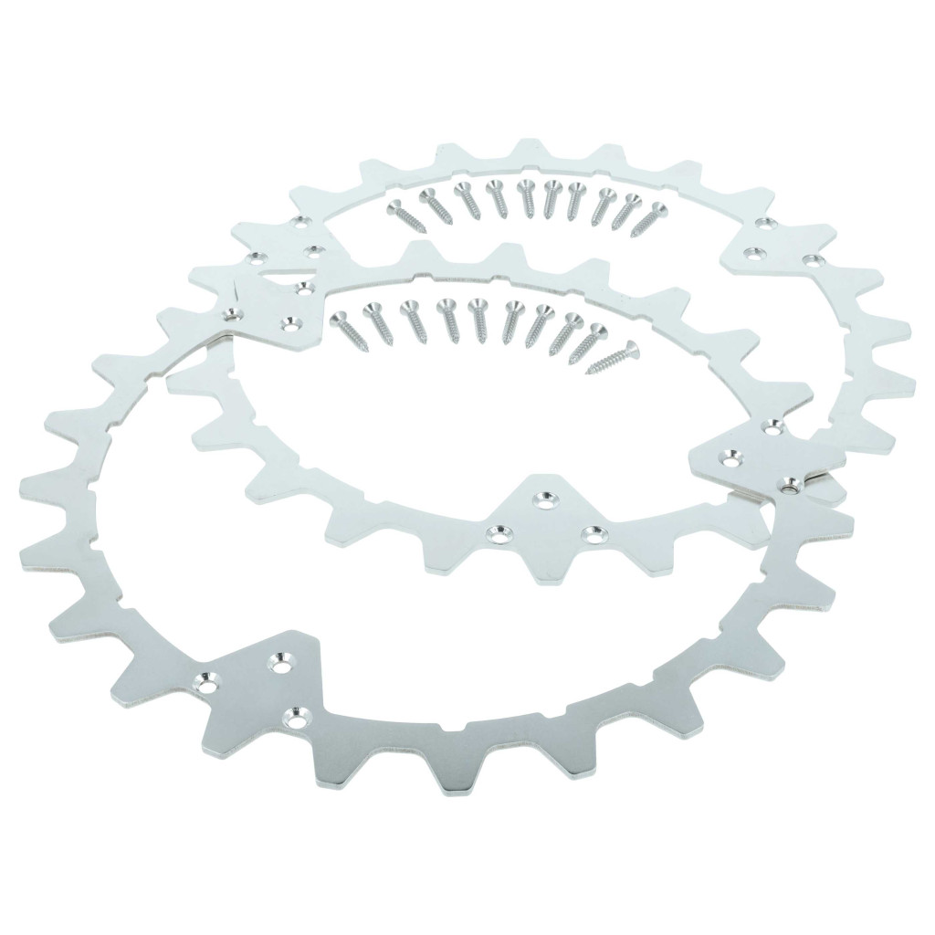 High-traction spikes made of stainless steel for your robotic lawn mower. Well-designed for easy replacement, full functionality and compatibility with Husqvarna robotic mowers. Stainless, durable, and weather-resistant. These robust wheel spikes significantly improve the traction and pulling power of the robotic lawn mower. They provide reliable grip, especially on wet soil, slopes, or uneven terrain, preventing the robotic mower from slipping. The 24 precisely manufactured blades grip the ground firmly without damaging the lawn. This allows the robotic mower to move evenly across the area, leaving a clean cut behind, without tracks or holes. Installing the traction spikes is simple: place the spikes in the center of the wheels and secure them with the included star-headed screws. Thanks to the attachment on the outer side of the wheels, the spikes remain stable and securely in place. The durable wheel accessories made of stainless steel ensure a long lifespan and provide constant protection against corrosion, even with regular outdoor use and varying weather conditions. CE and RoHS certified - meets all operational safety directives. Compatible devices: Husqvarna Automower 320, Husqvarna Automower 420, Husqvarna Automower 430X, Husqvarna Automower 435X, Husqvarna Automower 440, Husqvarna Automower 450X, Husqvarna Automower 550