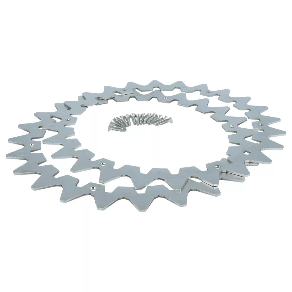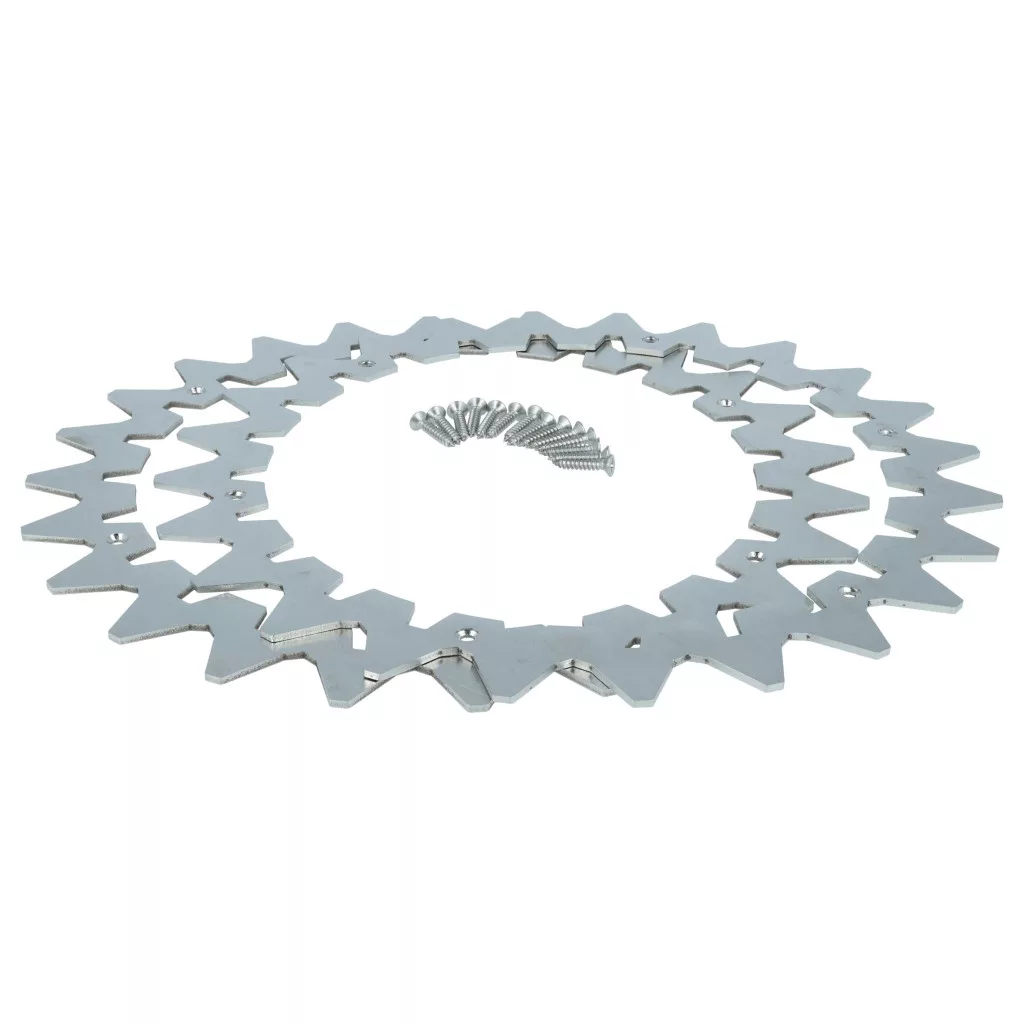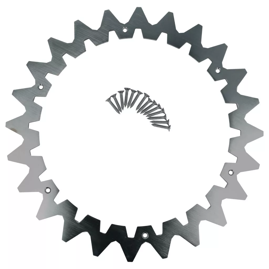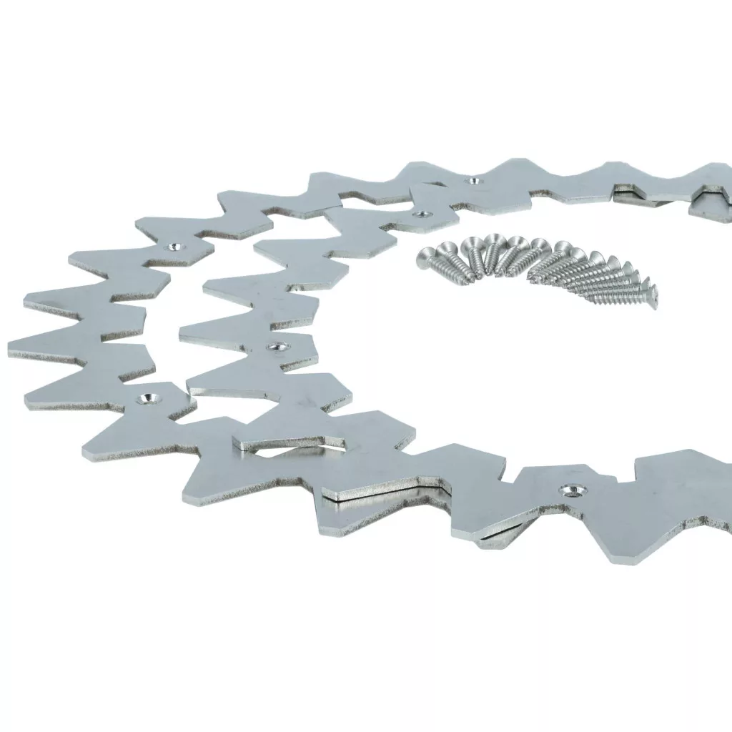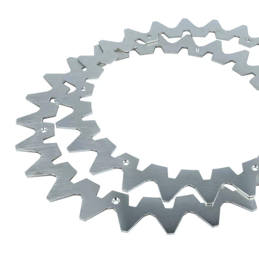 High-traction spikes made of stainless steel for your robotic lawn mower. Well-designed, easily replaceable, providing full functionality and compatibility with the Segway lawn mower robot. Rust-resistant, durable, and weatherproof. These robust wheel spikes significantly improve the traction and pulling power of the robotic lawn mower. They provide reliable grip, especially on wet soil, slopes, or uneven terrain, preventing the robotic lawn mower from slipping. The precision-engineered blades grip the ground firmly without damaging the lawn. This allows the robotic lawn mower to move evenly across the area, leaving a clean cut without tracks or holes. Installing the traction spikes is simple: place the spikes in the center of the wheels and secure them with the included star-headed screws. Thanks to the attachment on the inner part of the wheels, the spikes remain stable and securely in place. The durable, stainless steel material of these wheel accessories ensures a long lifespan and provides constant protection against corrosion, even with regular outdoor use and varying weather conditions. CE and RoHS certified - complies with all operational safety directives. Compatible devices: Segway Navimow i105E