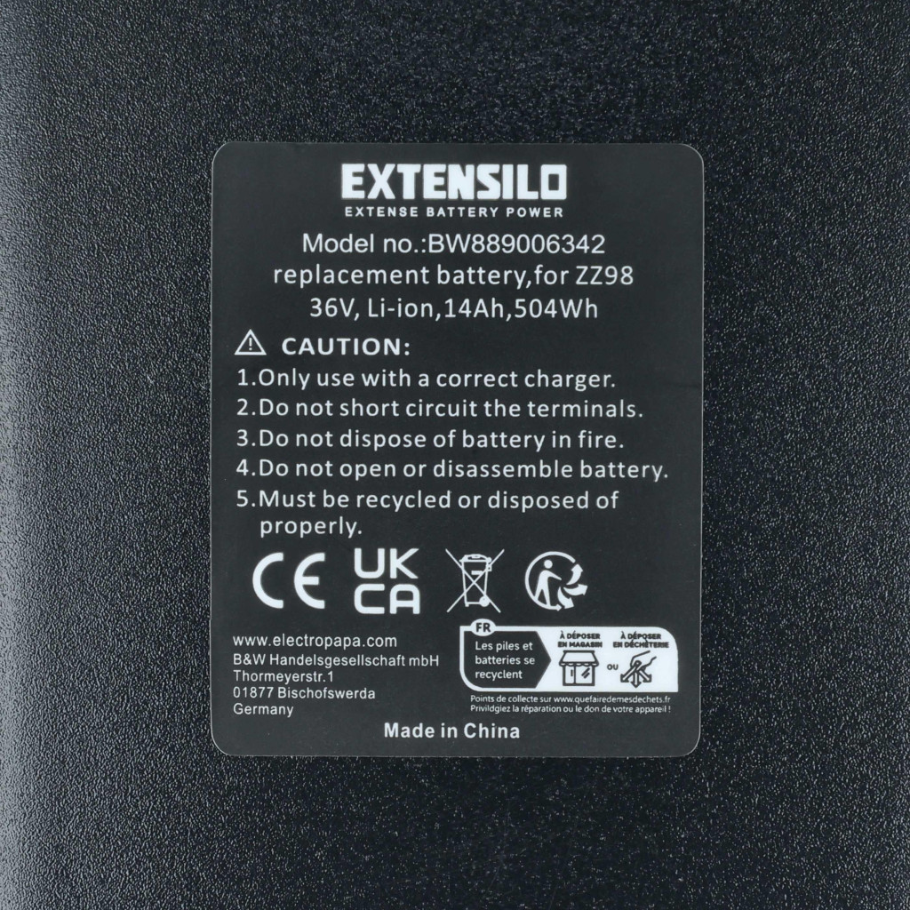 Compatible battery that breathes new life into your Prophete e-bike. High-quality component with optimal price-performance ratio. Reliable operation and full compatibility with your electric bicycle. Precisely manufactured for a perfect fit to your device. CE and RoHS certified - meets all operational safety guidelines. No memory effect. High-quality Li-Ion cells for optimal device performance. Lithium-ion batteries have high energy density and are among the strongest batteries. Compared to NiMH batteries, they have a low self-discharge rate and are not affected by the memory effect. They do not require regular discharging, thus requiring low maintenance. With proper storage, these rechargeable batteries are long-lasting, durable, and have a high number of charge cycles. Li-ion batteries are used in various portable devices that have high energy demands, such as smartphones, notebook computers, cameras, and power tools. These batteries can also be used in radio-controlled models and telecommunications applications. Compatible devices: Prophete Entdecker, Prophete Graveler