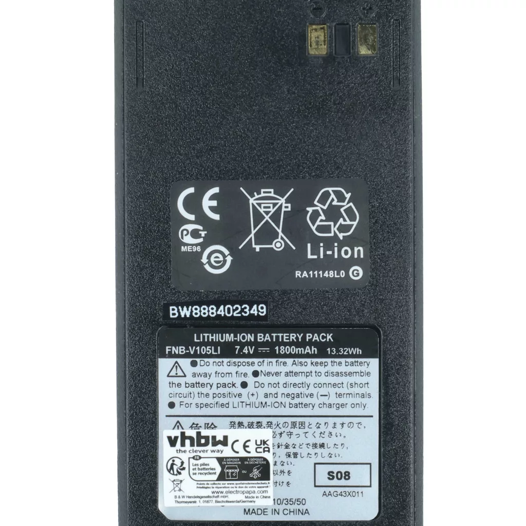 Compatible batteries that breathe new life into your Yaesu / Marantz / Standard Horizon / Vertex CB radio. High-quality spare parts with optimal price-performance ratio. Reliable operation and full compatibility with your radio device. Precise manufacturing for perfect fit. CE and RoHS certification - meets all operational safety directives. No memory effect. High-quality Li-Ion cells for optimal device performance. Lithium-ion batteries have high energy density and are among the strongest batteries. They have a low self-discharge rate compared to NiMH batteries and are not affected by the memory effect. They do not require regular discharging, making them low maintenance. With proper storage, these rechargeable batteries are long-lasting, durable, and have a high charge cycle count. Li-ion batteries are used in various portable devices that have high energy demands, such as smartphones, notebook computers, cameras, and power tools. These batteries can also be used in radio-controlled models and telecommunications applications. Compatible devices: Marantz HX280, Marantz HX280E, Marantz HX280S, Marantz HX380, Standard Horizon HX280, Standard Horizon HX280E, Standard Horizon HX280S, Standard Horizon HX380, Vertex HX280, Vertex HX280E, Vertex HX280S, Vertex HX380, Yaesu HX280, Yaesu HX280E, Yaesu HX280S, Yaesu HX380
