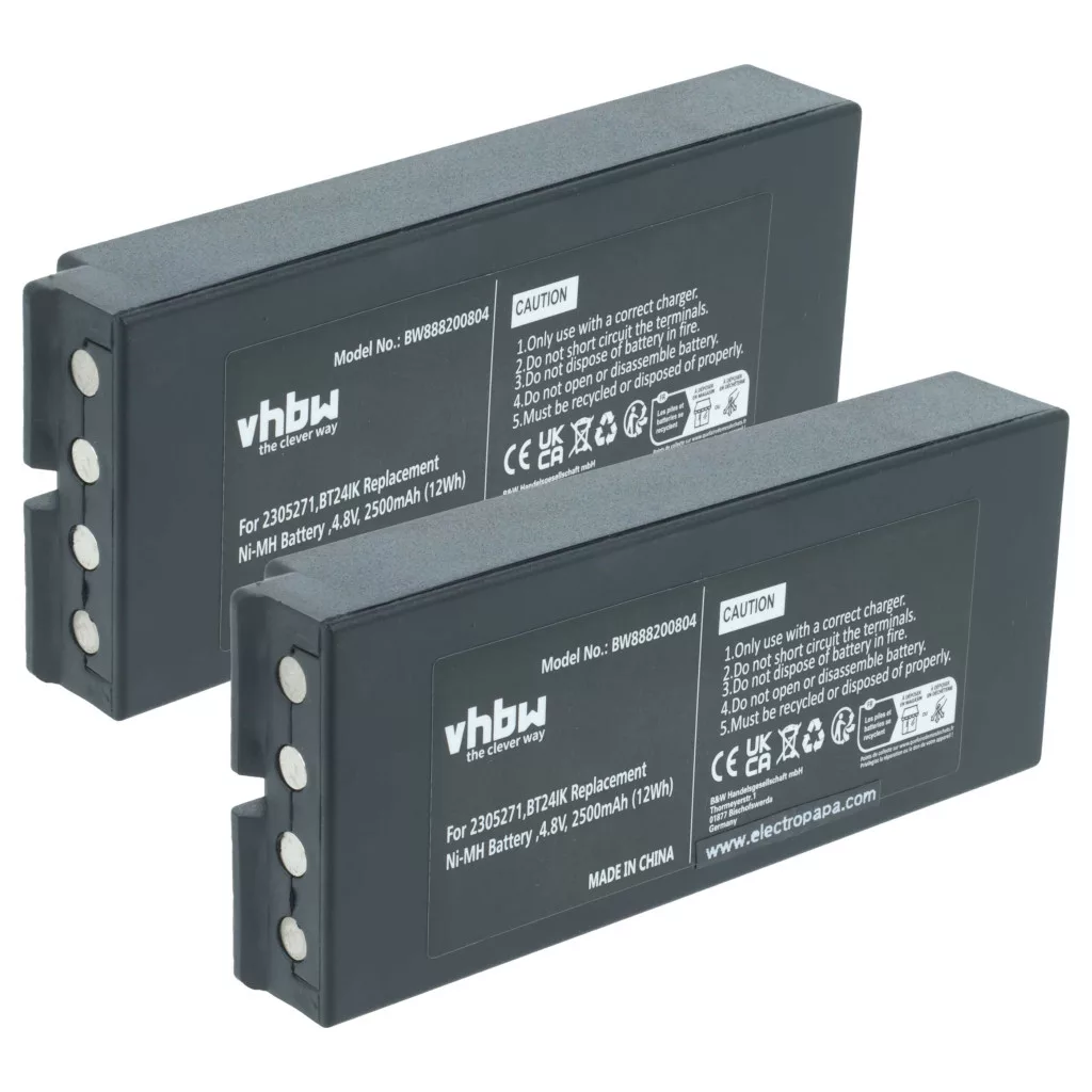 Compatible batteries for reviving Ikusi / Iribarri / Danfoss industrial radio remote controls. High-quality spare parts with optimal price-performance ratio. Reliable operation and full compatibility with your remote control. Precise manufacturing for perfect fit to your device. CE and RoHS certification - meets all operational safety directives. High-quality NiMH cells for optimal device performance. Nickel-metal hydride batteries are similar to nickel-cadmium cells but have a higher energy density at the same voltage (approximately twice). Due to their low internal resistance, NiMH batteries can be used in high energy-consuming devices at low cost, such as small LED lamps, toys, audio and photo devices, phones, electric toothbrushes, shavers, tools, and remote-controlled electric models. Compatible devices: Danfoss IK3, Danfoss IK4, Danfoss T70 console box, Danfoss T70/3, Danfoss T70/4, Danfoss T70/8, Danfoss TM70/3, Danfoss TM70/8, Ikusi Berlinde, Ikusi GH, Ikusi IK3, Ikusi IK3 transmitters, Ikusi IK4, Ikusi IKONTROL, Ikusi IKONTROL 2305271, Ikusi JASO, Ikusi KONECRANES, Ikusi T70 console box, Ikusi T70/3, Ikusi T70/4, Ikusi T70/8, Ikusi TM70/3, Ikusi TM70/8, Iribarri iK3, Iribarri iK4