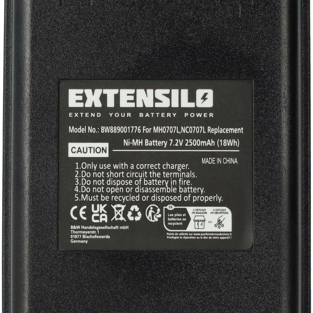 Compatible batteries that breathe new life into the Autec industrial radio remote control. High-quality spare parts with optimal price-performance ratio. Reliable operation and full compatibility with your remote control. Precise manufacturing for perfect fit in your device. CE and RoHS certification - meets all operational safety guidelines. High-quality NiMH cells for optimal device performance. Nickel-metal hydride batteries are similar to nickel-cadmium cells but have a higher energy density at the same voltage (about twice as much). Due to their low internal resistance, NiMH batteries can be used in high energy-consuming devices, but at a low cost, such as small LED lamps, toys, audio and camera devices, phones, electric toothbrushes, shavers, power tools, and remote-controlled electric models. Compatible devices: Autec CB71.F, Autec FUA10, Autec UTX97 transmitter