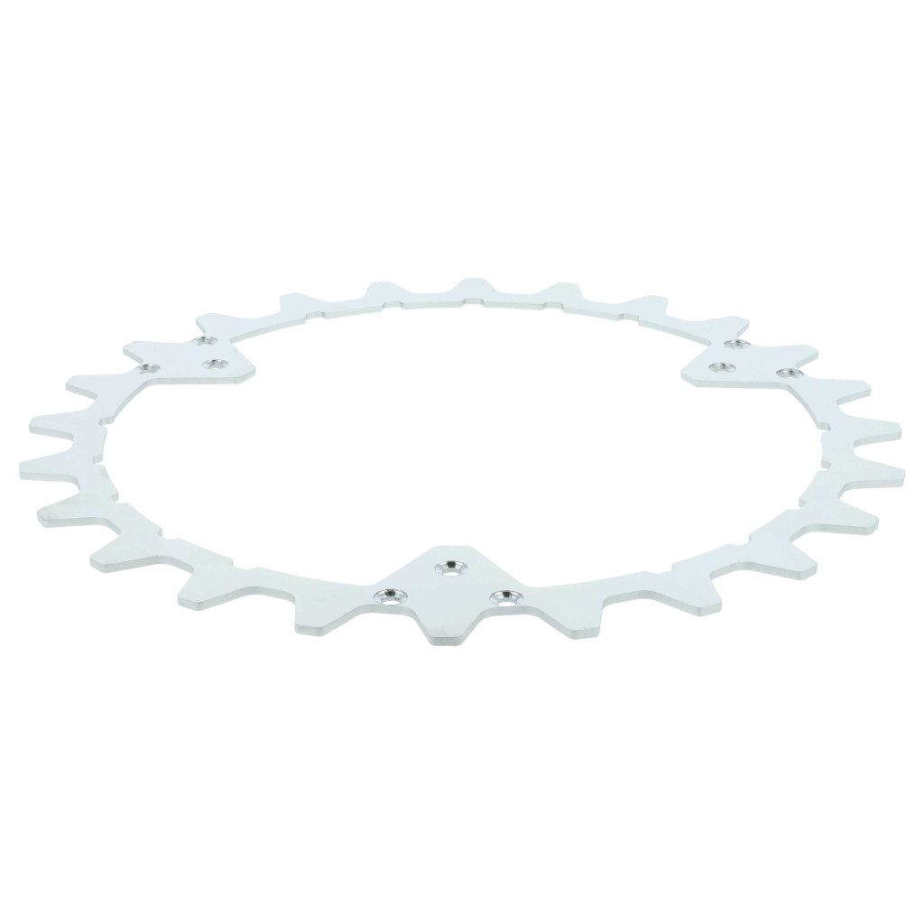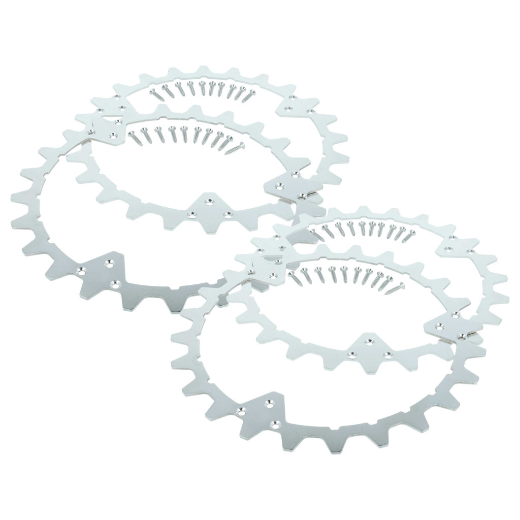 High-traction spikes made of stainless steel for your robotic lawn mower. Well-designed for easy replacement, full functionality and compatibility with the Husqvarna robotic mower. Rust-resistant, durable, and weatherproof. These robust wheel spikes significantly improve the traction and pulling power of the robotic lawn mower. They provide reliable grip, especially on wet soil, slopes, or uneven terrain, preventing the robotic mower from slipping. The 24 precisely manufactured blades grip the ground firmly without damaging the lawn. This allows your robotic mower to move evenly across the area, leaving a clean cut without tracks or holes. Installing the traction spikes is simple: place the spikes at the center of the wheels and secure them with the included star-headed screws. Thanks to the attachment on the outer part of the wheel, the spikes remain stable and securely in place. The durable, rust-resistant stainless steel material of these wheel accessories ensures a long lifespan and provides constant protection against corrosion, even with regular outdoor use and varying weather conditions. CE and RoHs certified - meets all operational safety guidelines. Compatible devices: Husqvarna Automower 320, Husqvarna Automower 420, Husqvarna Automower 430X, Husqvarna Automower 435X, Husqvarna Automower 440, Husqvarna Automower 450X, Husqvarna Automower 550