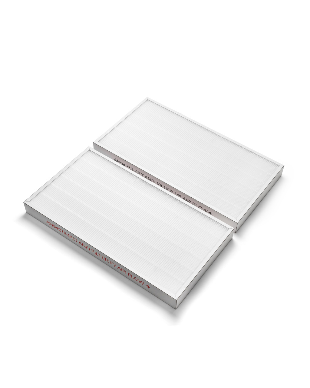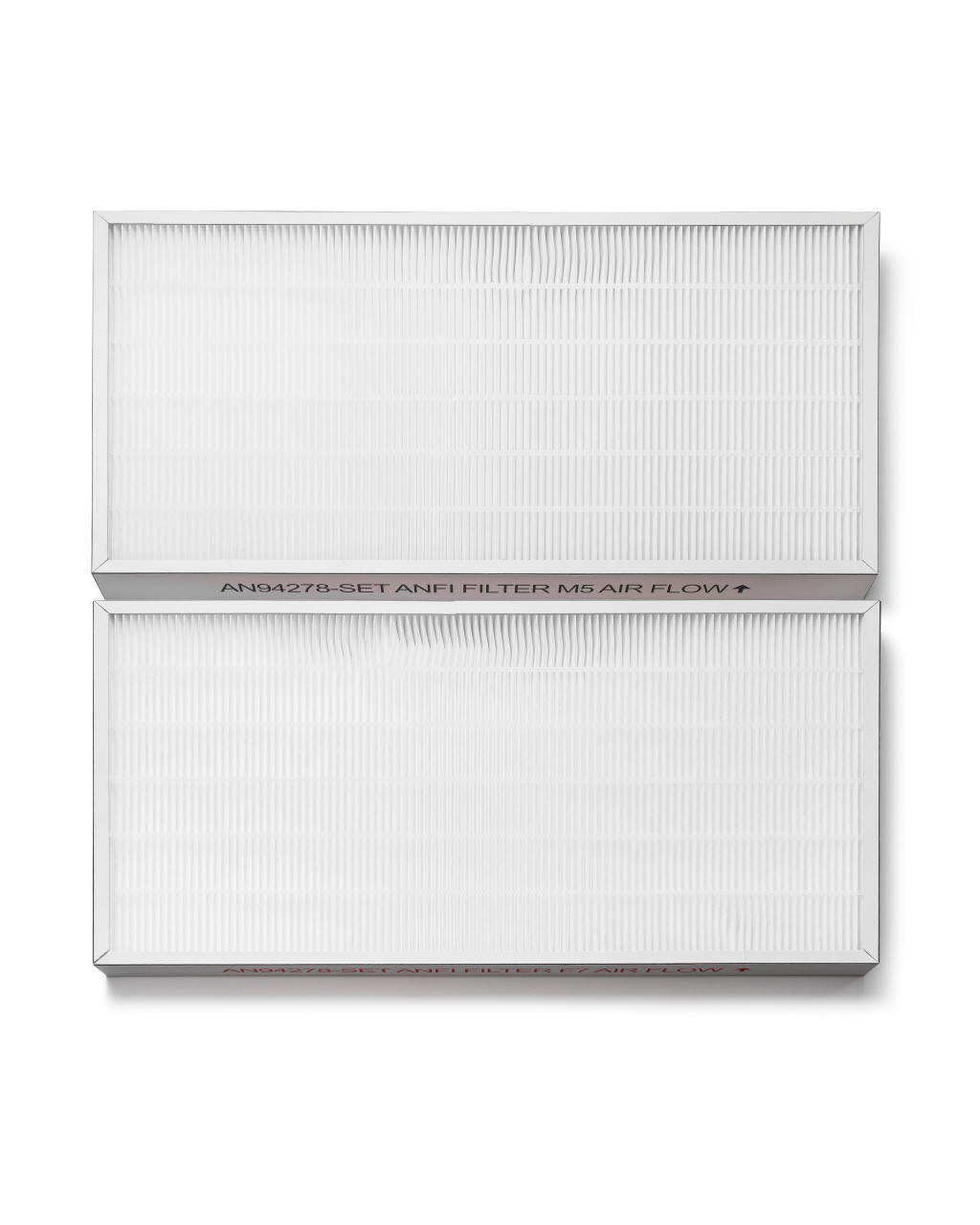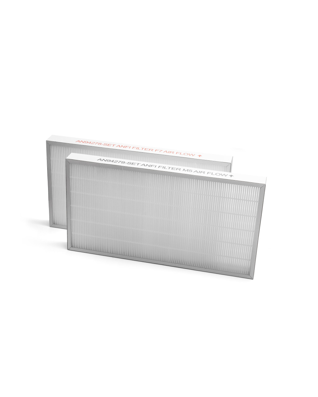 ANFI heat recovery filter for KOMFOVENT Domekt R 450 V C6M ventilation system. Regular filter replacement ensures efficient heat recovery and fresh air. Exact fit, easy replacement. Set includes: M5 class filter (exhaust); F7 class filter (air supply). Recommended filter replacement: every 3-6 months. Operation of the device with dirty filters causes a decrease in the efficiency of heat recovery in the exchanger and increased energy consumption by the fans. Compatible devices: KOMFOVENT Domekt R 450 V C6M.