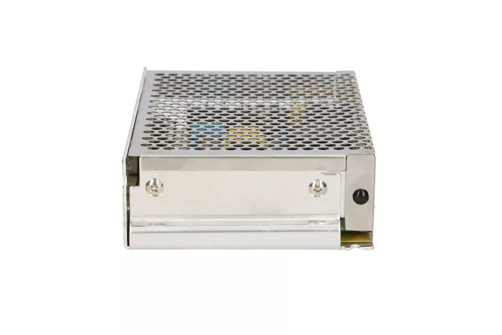 The perforated metal housing facilitates airflow, resulting in more efficient cooling of the unit. The screw terminals are accordingly marked and are used for connecting cable entries according to electrical principles. The installer can adjust the output voltage within a given range using a potentiometer.