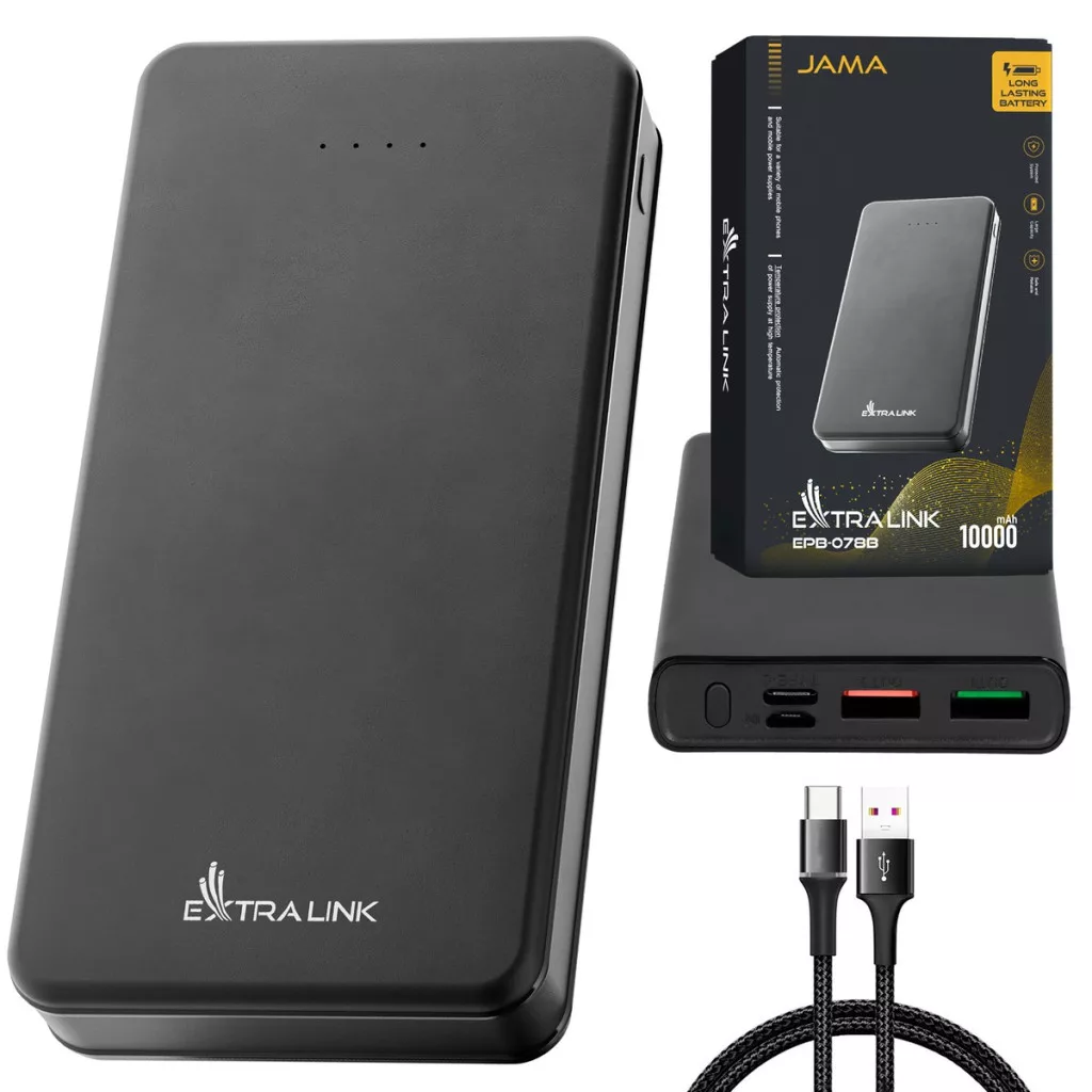 Extralink EPB-078b 10000mAh Black, Power Bank, with USB-C Connector