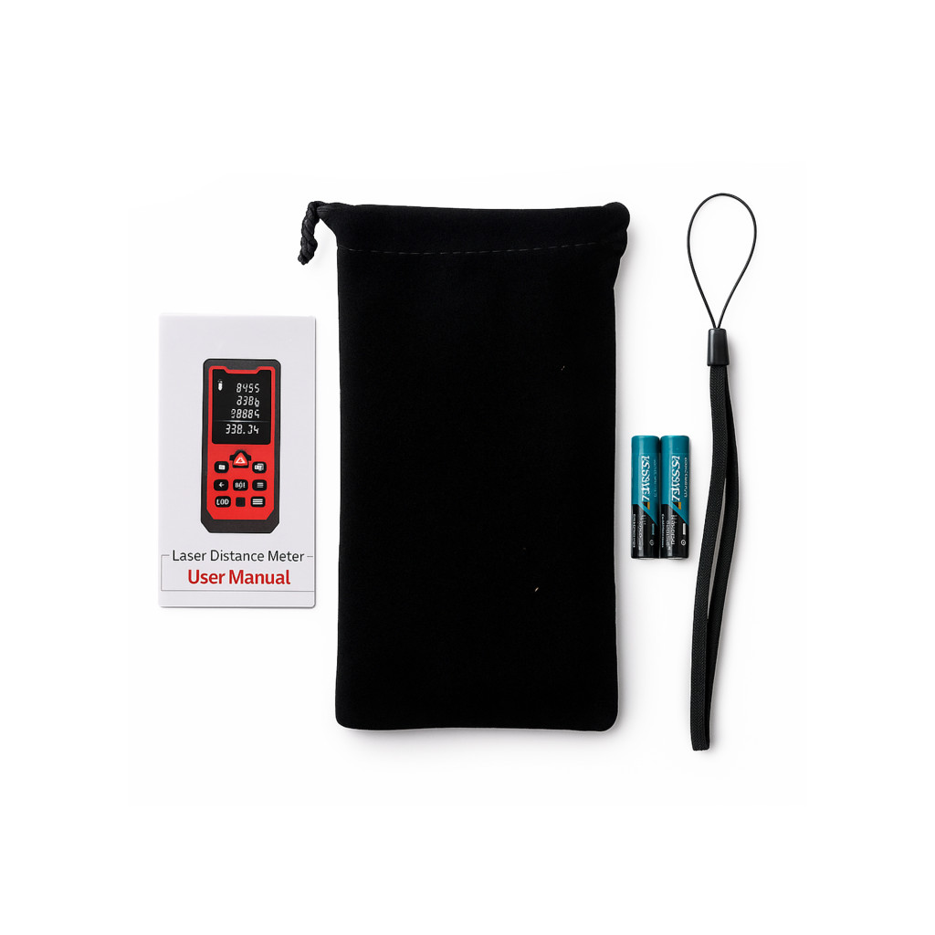 The device comes with a complete accessory set: batteries, a practical wrist strap, and a soft protective case. Thus, the Powerlink PWL-E40 laser distance meter is ready to use immediately, without the need for separate purchases. It arrives in safe and aesthetic packaging, making it ideal even as a gift. With convenient storage and easy portability, it can always be at hand when you need it.