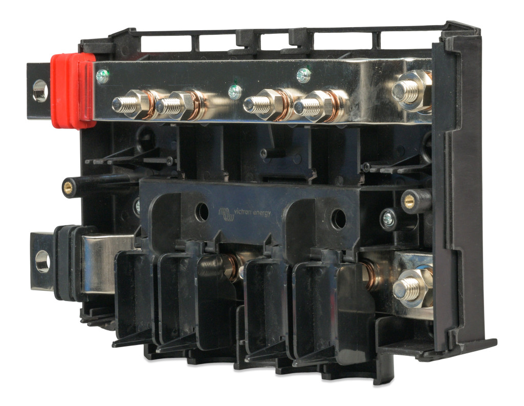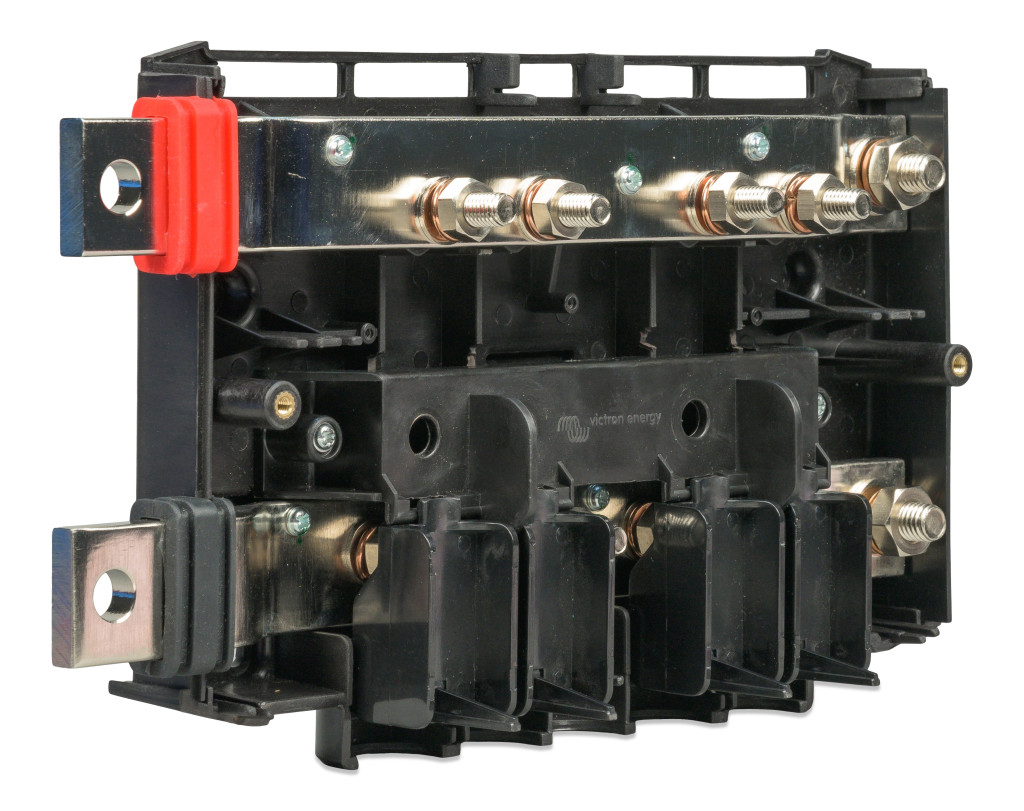 Modular DC busbar used for connecting batteries to the Lynx DC distribution system.