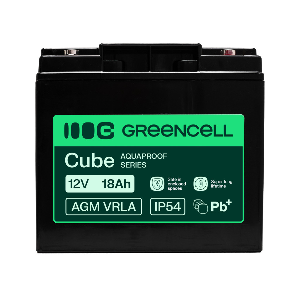 Greencell AGM VRLA 12V 18Ah karbantartásmentes akkumulátor kasszákhoz
