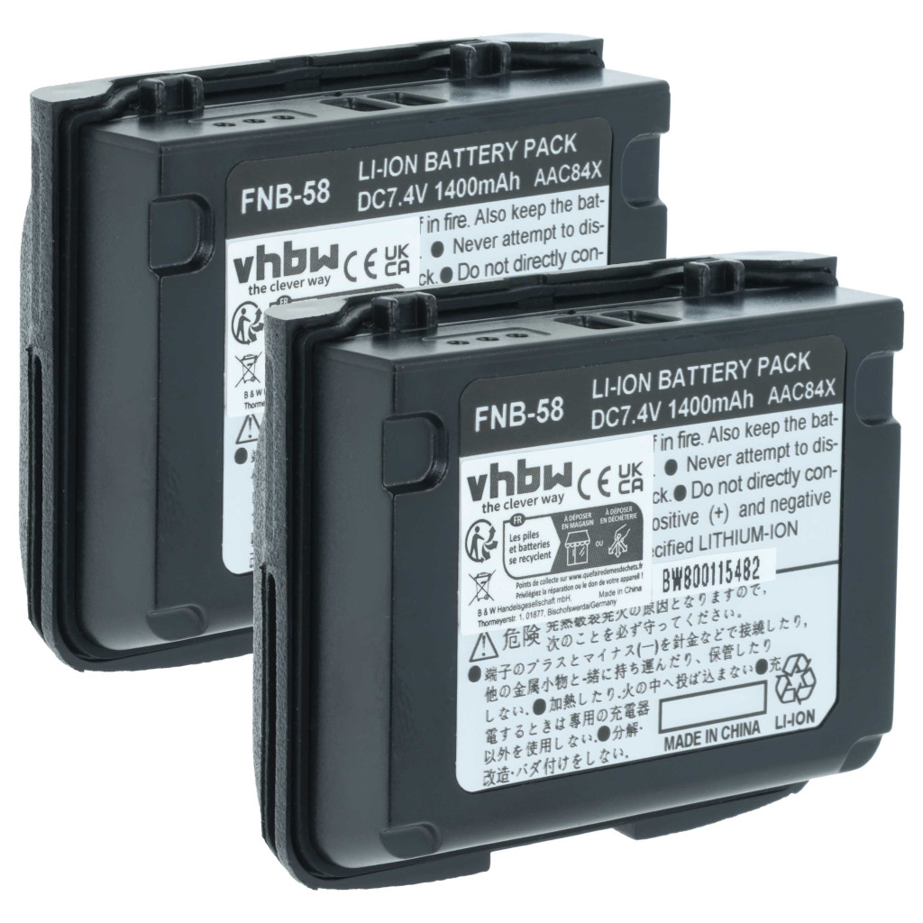 Kompatibilis eszközök: Horizon HX460, Horizon HX460S, Horizon HX470S, Horizon HX471, Horizon HX471S, Horizon HX471SB, Horizon HX471SS, Vertex Yaesu VX-5E, Vertex Yaesu VX-5R, Vertex Yaesu VX-5RS, Vertex Yaesu VX-6, Vertex Yaesu VX-6E, Vertex Yaesu VX-6R, Vertex Yaesu VX-7E, Vertex Yaesu VX-7R, Vertex Yaesu VX-7RB, Vertex Yaesu VXA-700, Vertex Yaesu VXA-710, Yaesu Vertex FNB-58, Yaesu Vertex FNB-58Li, Yaesu Vertex FNB-80, Yaesu Vertex FNB-80Li