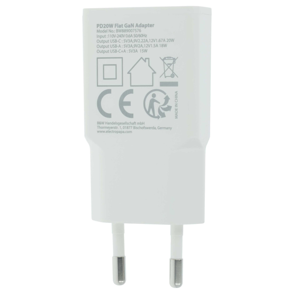 Kimeneti DC: Kimeneti USB-A: 5 V - 3 A / 9 V - 2 A / 12 V - 1,5 AKimeneti USB-C: 5 V - 3 A / 9 V - 2,22 A / 12 V - 1,67 AKimeneti USB-A + USB-C: 5 V - 3 ATeljesítmény USB-A: 18 WTeljesítmény USB-C: 20 WTeljesítmény USB-A + USB-C: 15 W