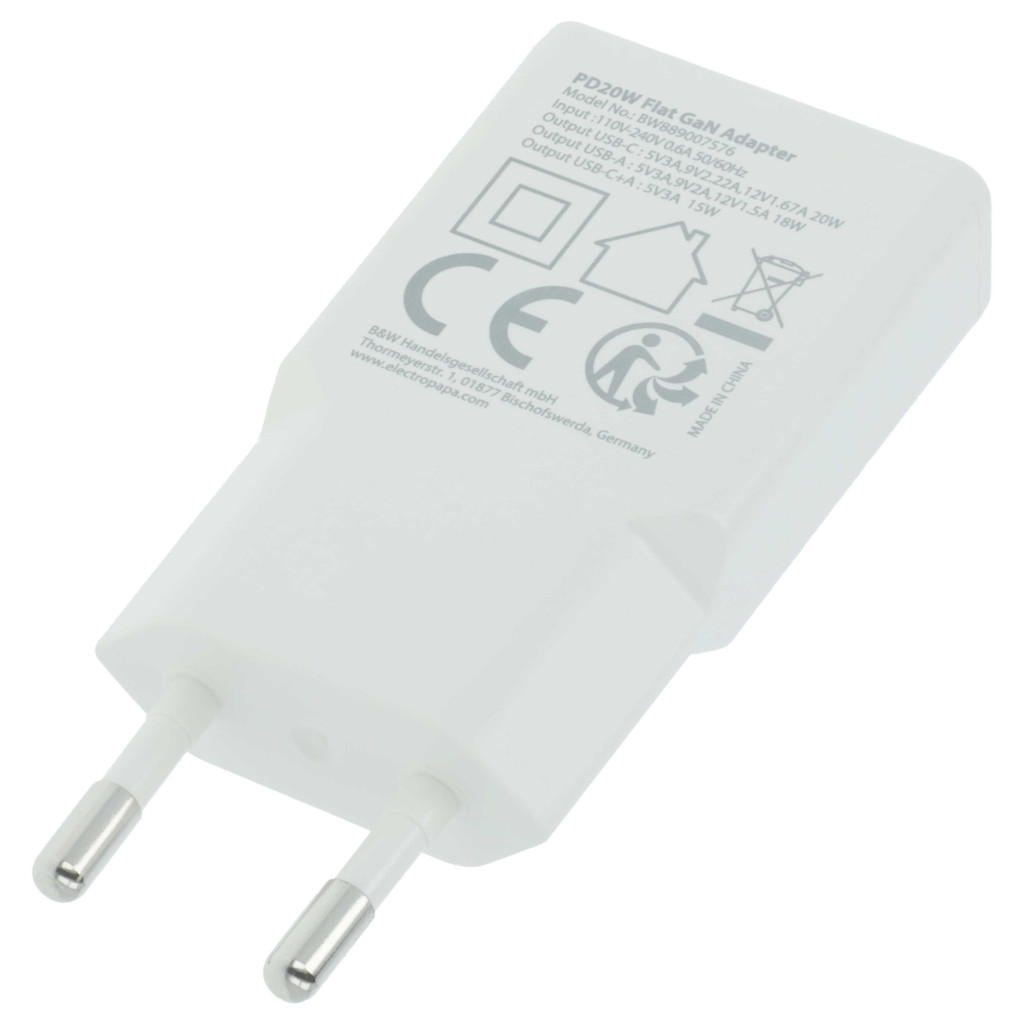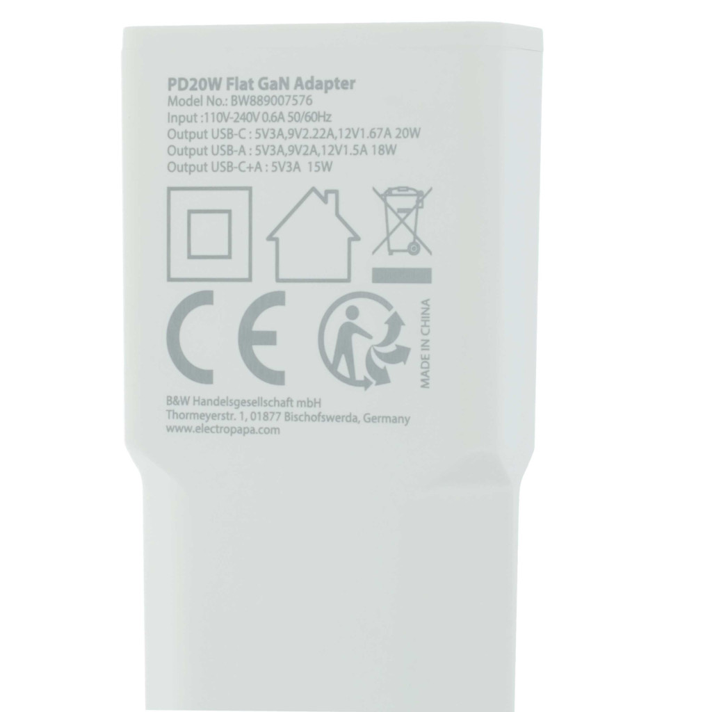 Kimeneti áram: Kimeneti áram USB-A: 3 A / 2 A / 1,5 AKimeneti áram USB-C: 3 A / 2,22 A / 1,67 AKimeneti áram USB-A + USB-C: 3 A