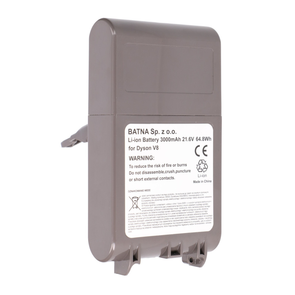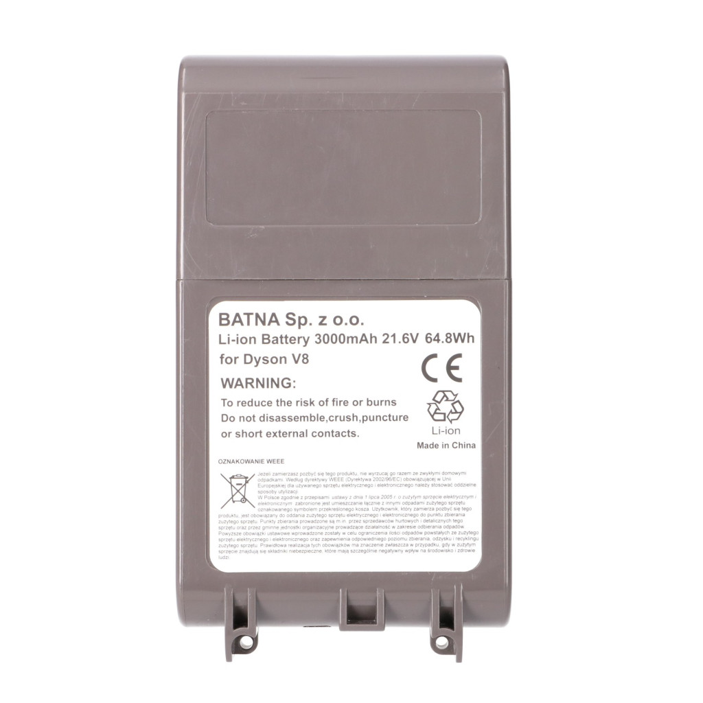 Ez a 21,6 V-os, 3000 mAh kapacitású akkumulátor ideális választás a Dyson V8 vezeték nélküli porszívókhoz. Megoldást nyújt, ha régi akkuja már gyorsan lemerül, csökkent a szívóereje takarítás közben, vagy hosszabb üzemidőre van szüksége a mindennapi használathoz. A nagy teljesítményű lítium-ion celláknak köszönhetően stabil energiaellátást biztosít, így a porszívó maximális szívóereje hosszabb ideig fenntartható.